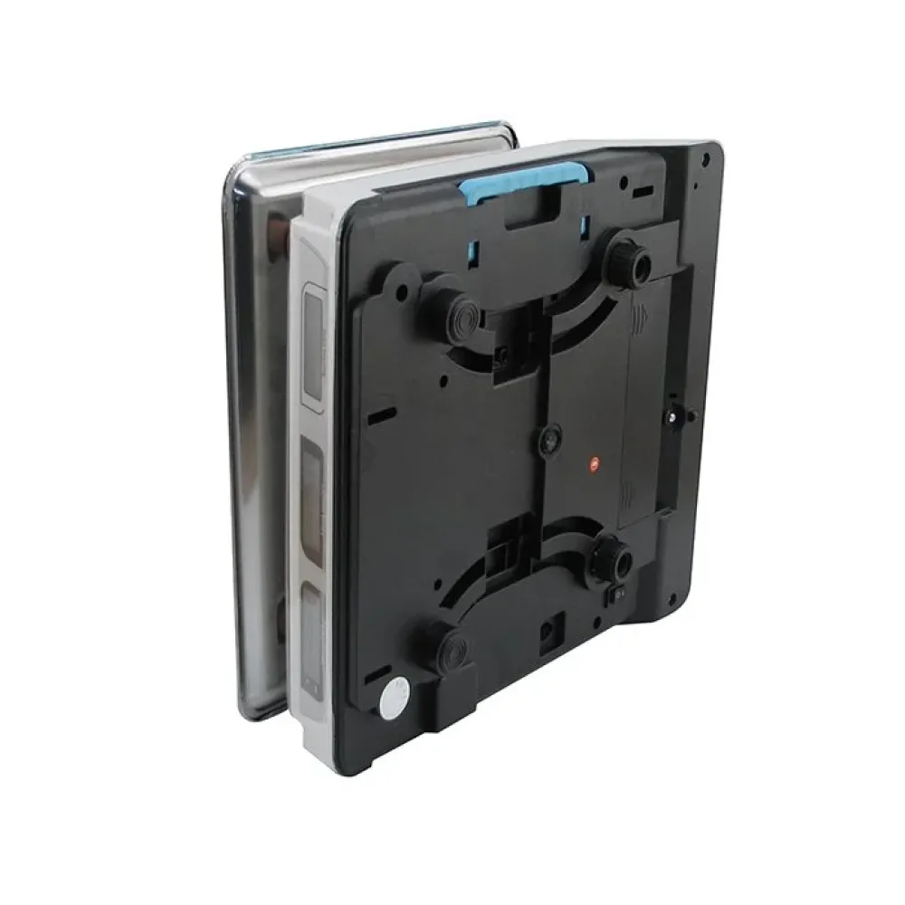 Платформа весов фиксируется специальными креплениями, поэтому при наклоне во время транспортировки, она не падает.