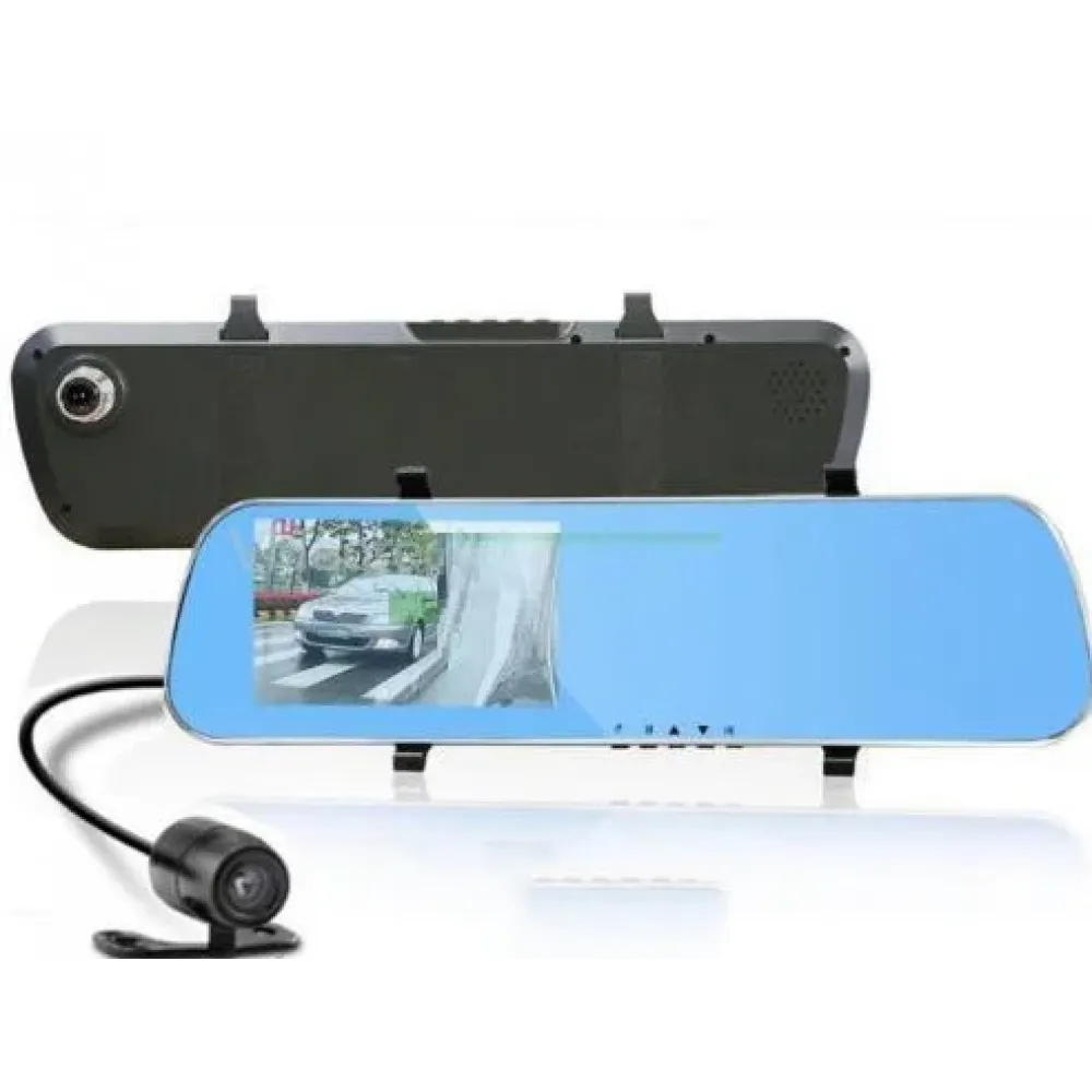 Удобное сочетание видеорегистраторов (запись переднего вида, запись заднего вида), камера заднего вида работает в режиме парковки, 5 дюймовый монитор, навигатор с возможностью обновления пробок через WiFi, FM-трансмиттер, просмотр видео и фото, Android 4.4.2, Play Market (установка дополнительных приложений), внутренняя память, зеркало со специальным антибликовым покрытием, крепится на штатное зеркало.