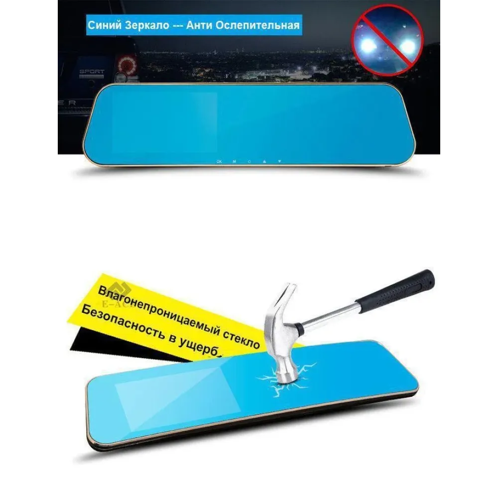 DVR T100 с лёгкостью устанавливается на штатное зеркало любого автомобиля, и не вибрирует при движении как многие другие дешёвые копии!!! На верхней части видеорегистратора расположились такие разьёмы: GPS, TF (разьём карты памяти ), AV-IN ( подключение парковочной камеры ), USB ( подключение зарядного устройства ).