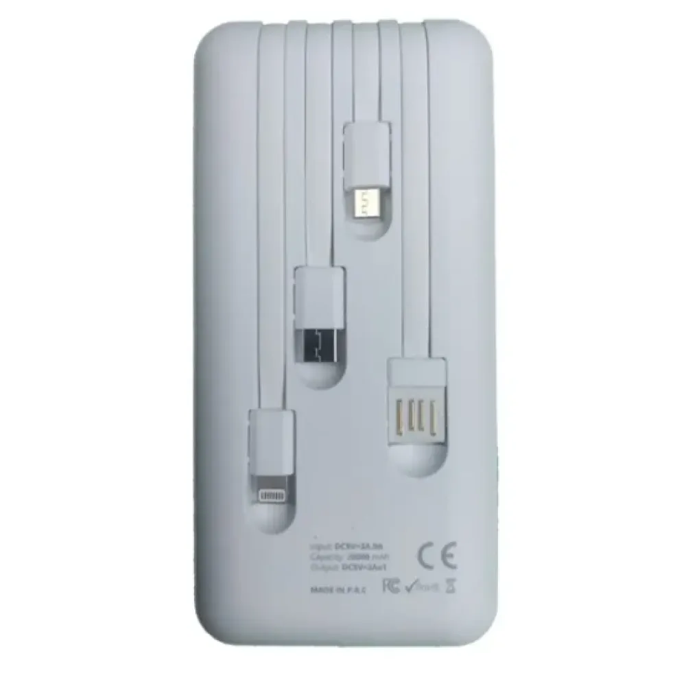 В устройство встроены четыре кабеля с разъемом type-C, micro-USB, lightning и type-a.