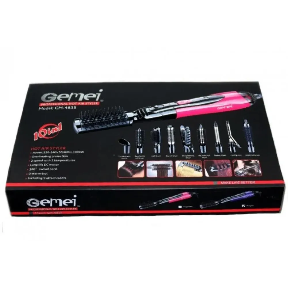 Воздушный мультистайлер 10 в 1 GEMEI GM-4835 Professional Hot Air Styler Многофункциональный стайлер с насадками для укладки волос