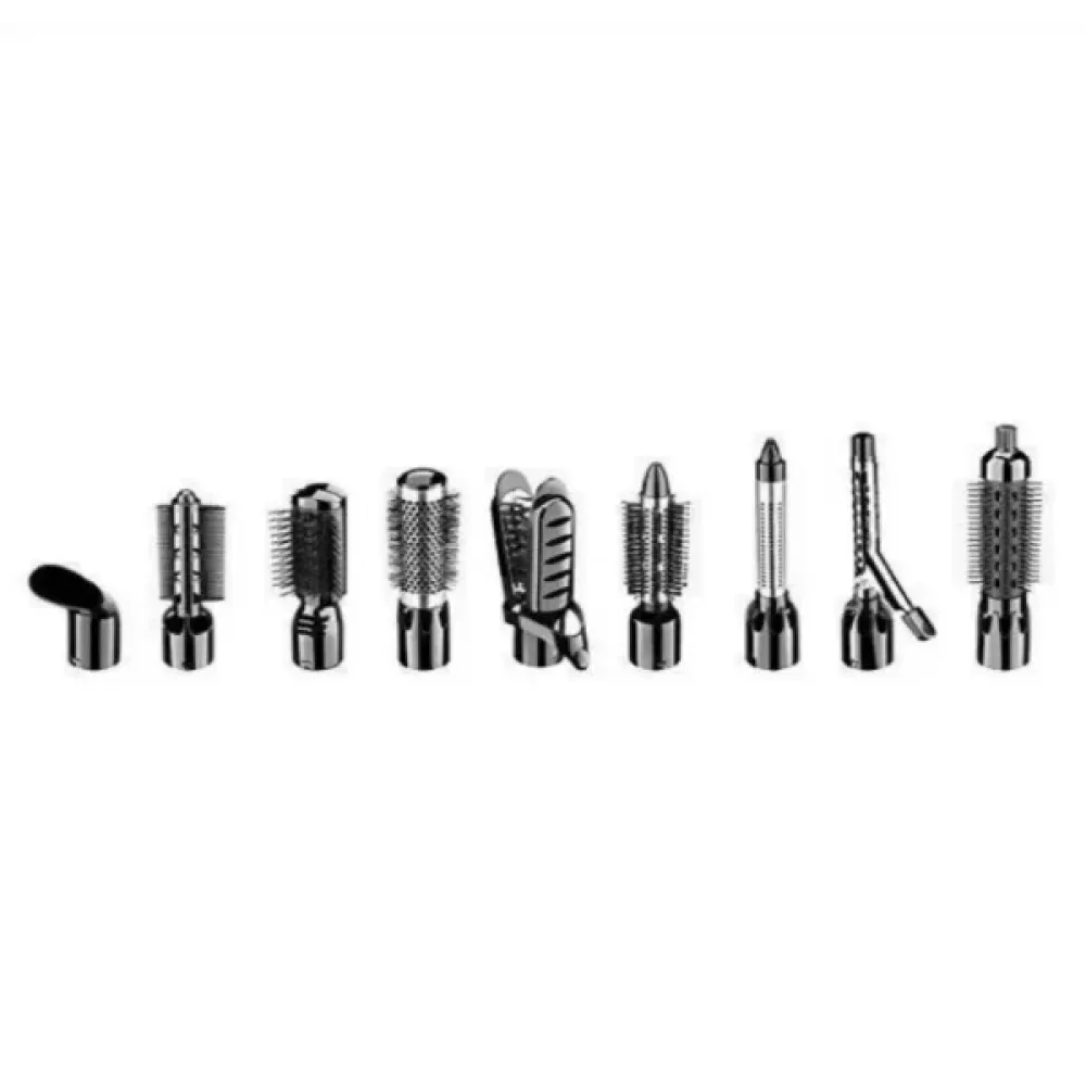 Данная модель имеет в комплекте 9 насадок для укладки волос: