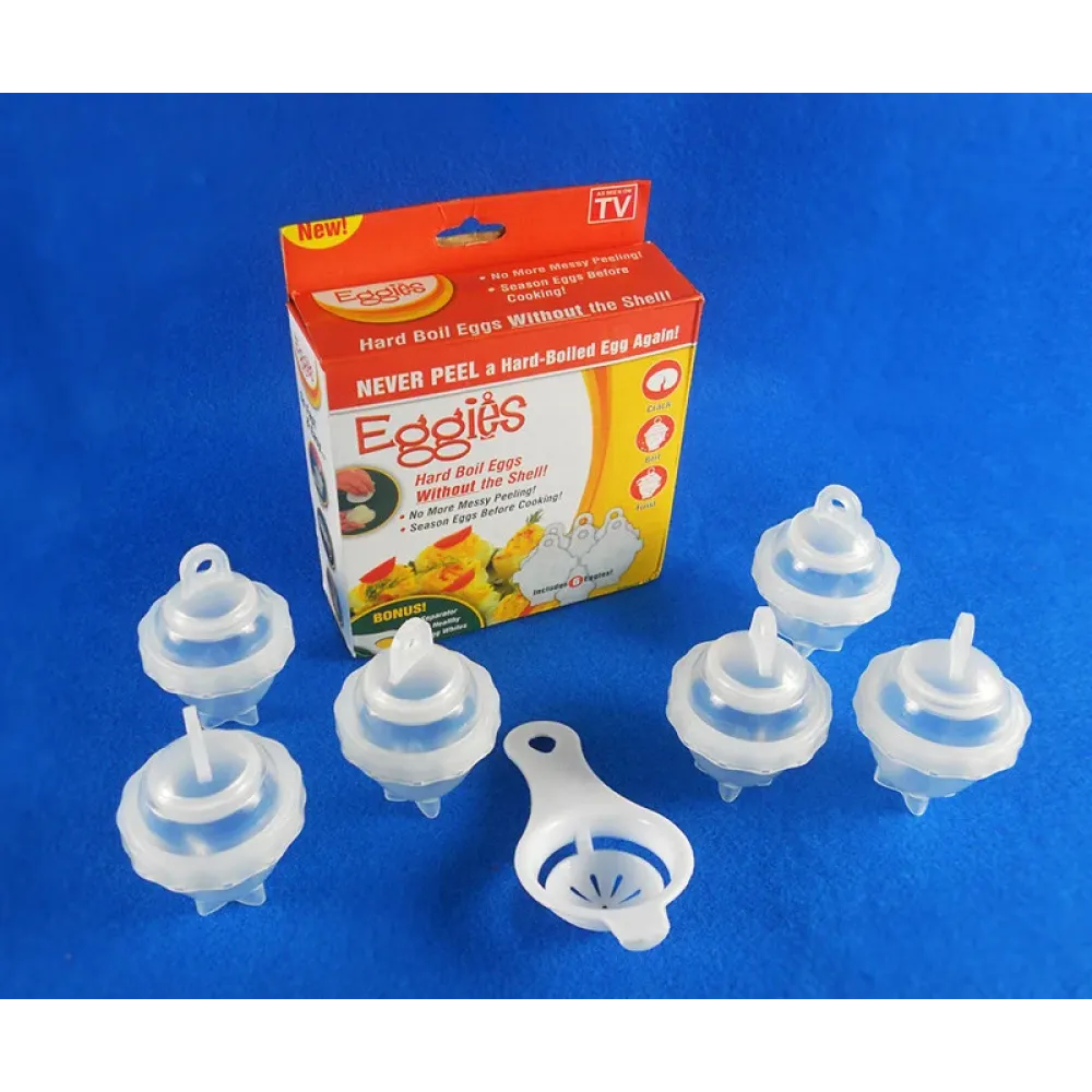 Форма для варки яиц без скорлупы поможет вам быстро и легко сварить яйца в том виде, который вы любите. Хотите только желтки или белки, без проблем, яйцеварка без скорлупы eggies справится с этим без проблем. Можно добавить в форму для варки вместе с яйцами ароматные специи, душистые травы, бекон, мясо, овощи или то, что ваша кулинарная фантазия пожелает.