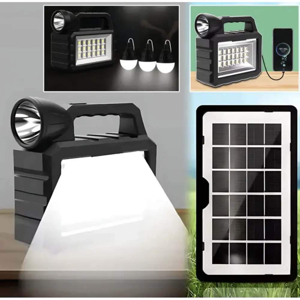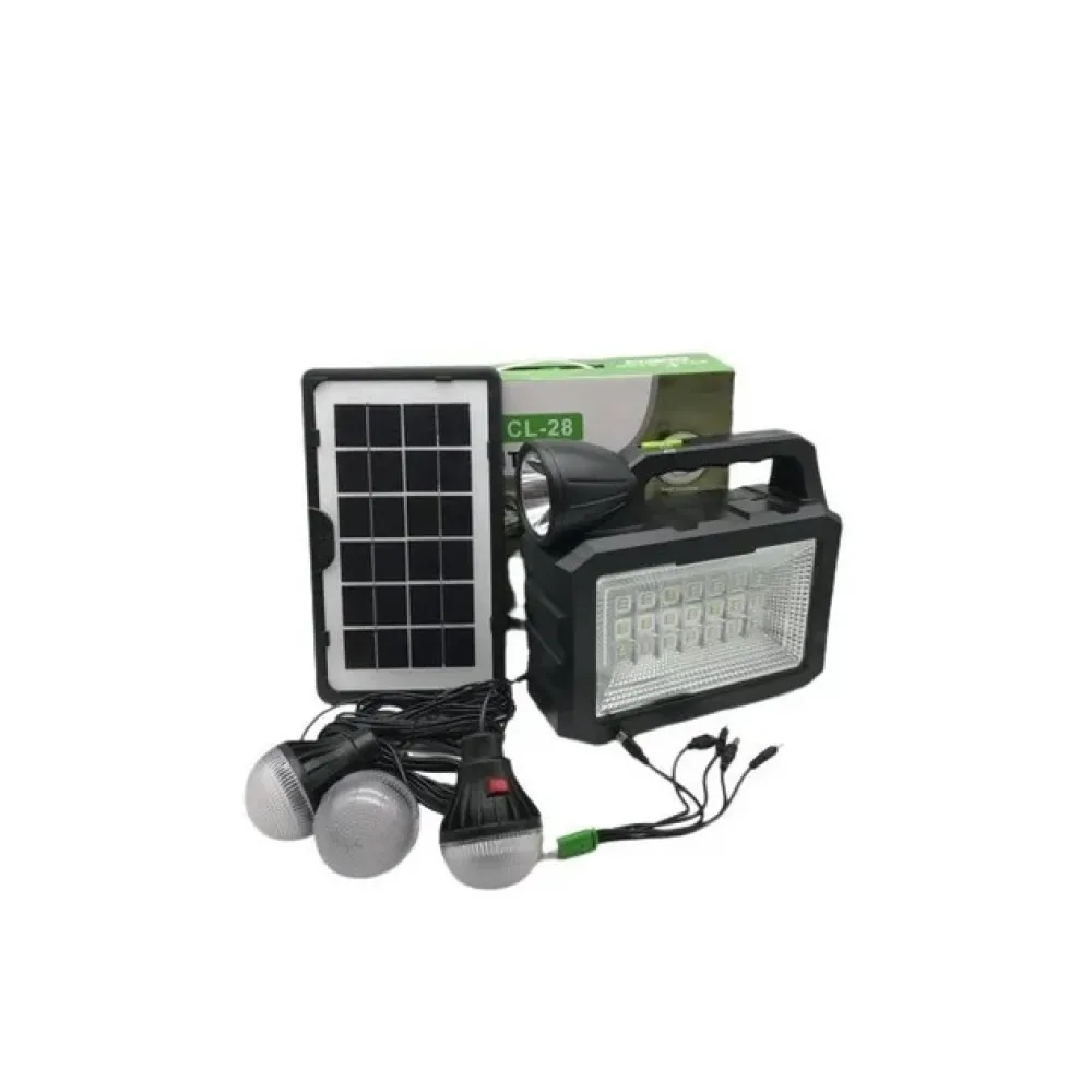 Зарядная станция портативная с солнечной панелью фонарем и 3 лампочками CL 28 ∙ Портативная CL-28 солнечная станция