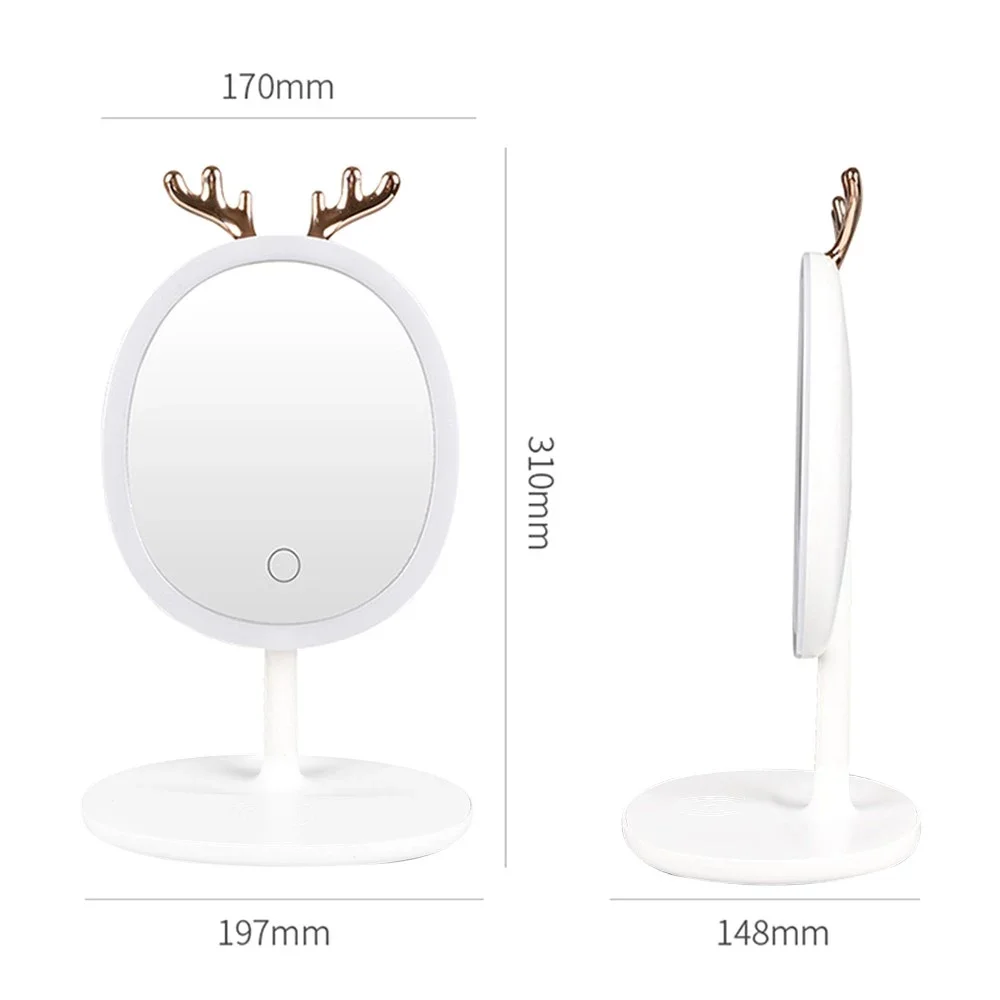 Зеркало косметическое для макияжа с LED подсветкой и держателем для бижутерии · Овальное настольное зеркало с USB зарядкой · 3 уровня яркости подсветки подойдет как для каждодневного макияжа, так и для процедур по уходу за кожей лица. Все потому, что этот удобный помощник для каждой девушки с LED подсветкой. Еще один плюс - питание от батареи, что исключает необходимость подсоединения устройства к сети. Есть 3 уровня яркости с которыми вам будет везде удобно и комфортно наводить красоту!