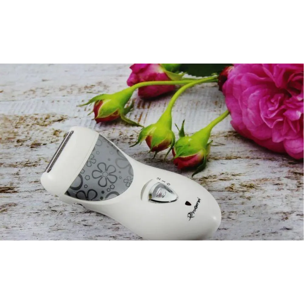 Эпилятор имеет два рабочих режима, благодаря чему можно регулировать скорость вращения головок, тем самым уменьшая болевые ощущения. Модель отличается эргономичным корпусом, имеет плавные контуры и специальный антискользящий рельеф с внешней стороны. Эффектная металлическая вставка с цветочным принтом и такие же блестящие клавиши придают изделию красивый внешний вид.