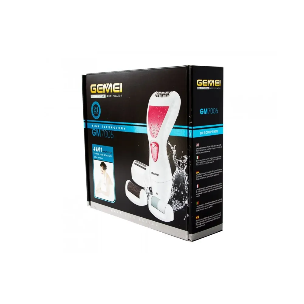 Эпилятор GM-7006 Professional 4in1. Идеально подходящий для линии бикини, подмышек и ног. Эффективен и безболезненный в отличие от традиционных методов химической эпиляции и щипцов, которые требуют много времени и приносят большую боль, этот эпилятор может удалить волосы всего за пять минут без боли или дискомфорта.
