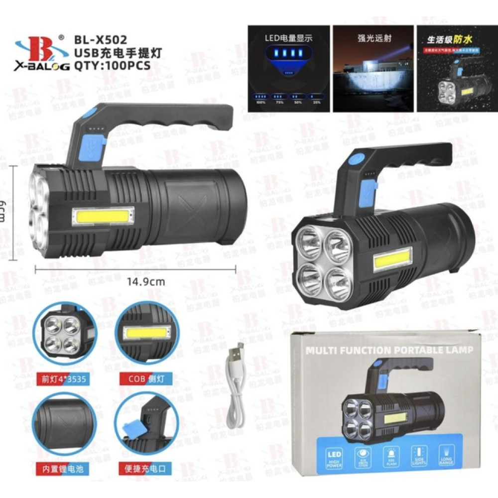 Ручной фонарь Bailong BL X502 • Мощный фонарь с COB-светом и USB зарядкой