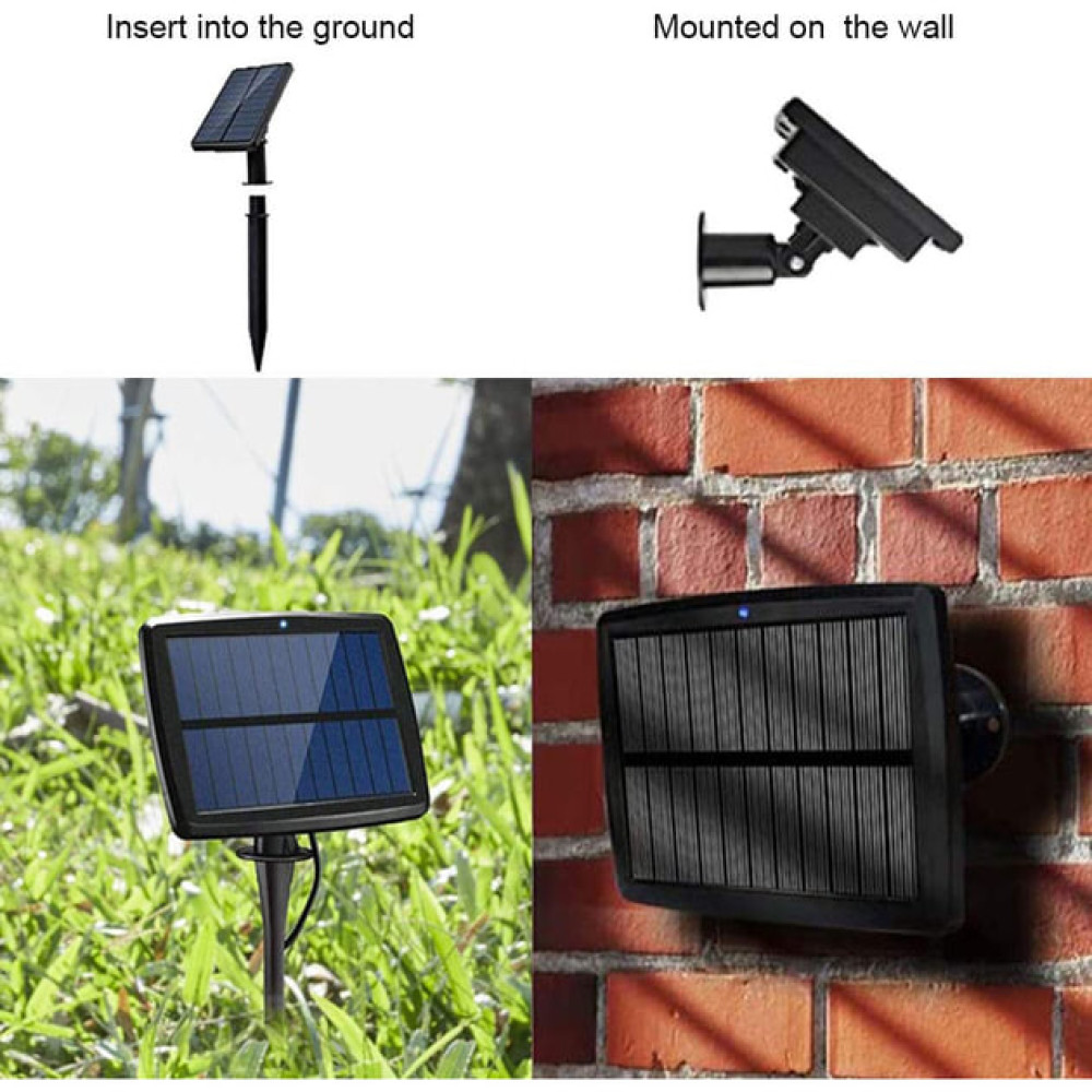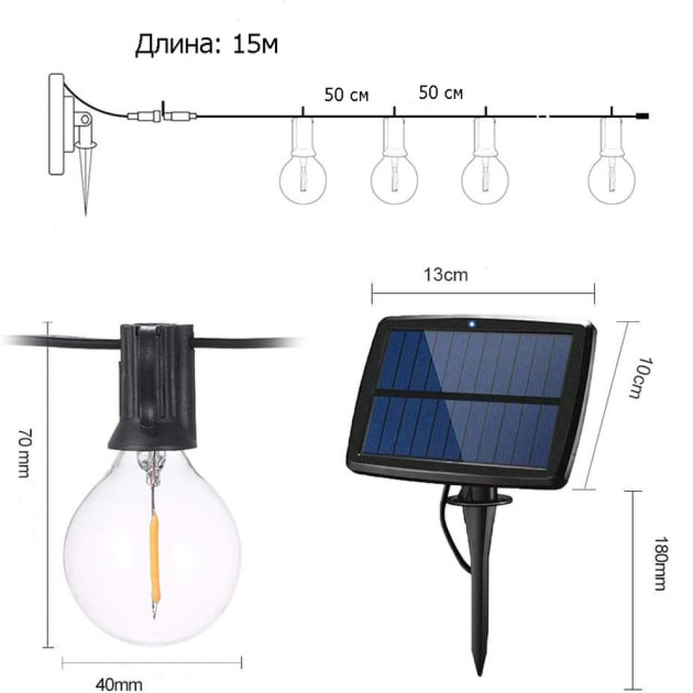 Гирлянда оснащена режимом мерцания и статическим режимом, что позволяет создавать динамичное и яркое освещение. Компактная солнечная панель автоматически заряжает аккумулятор в течение дня, а влагозащищённый корпус обеспечивает стабильную работу в любых погодных условиях. Идеально подходит для декора сада, двора, беседки или фасада дома.