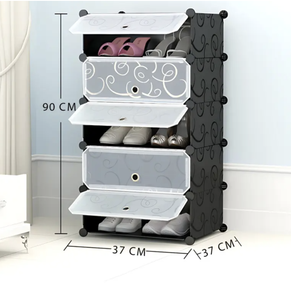 Сборный пластиковый шкаф-органайзер для дома и квартиры 37×37×90 см ∙ Шкаф пластиковый для обуви 37×37×90 см