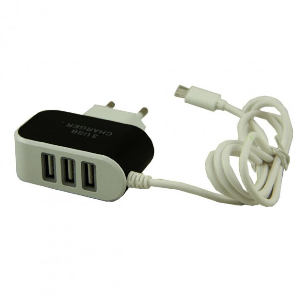 Сетевое зарядное устройство USB 8600 MICRO V8 ∙ Блок питания – хаб с адаптером для зарядки на 3 USB порта