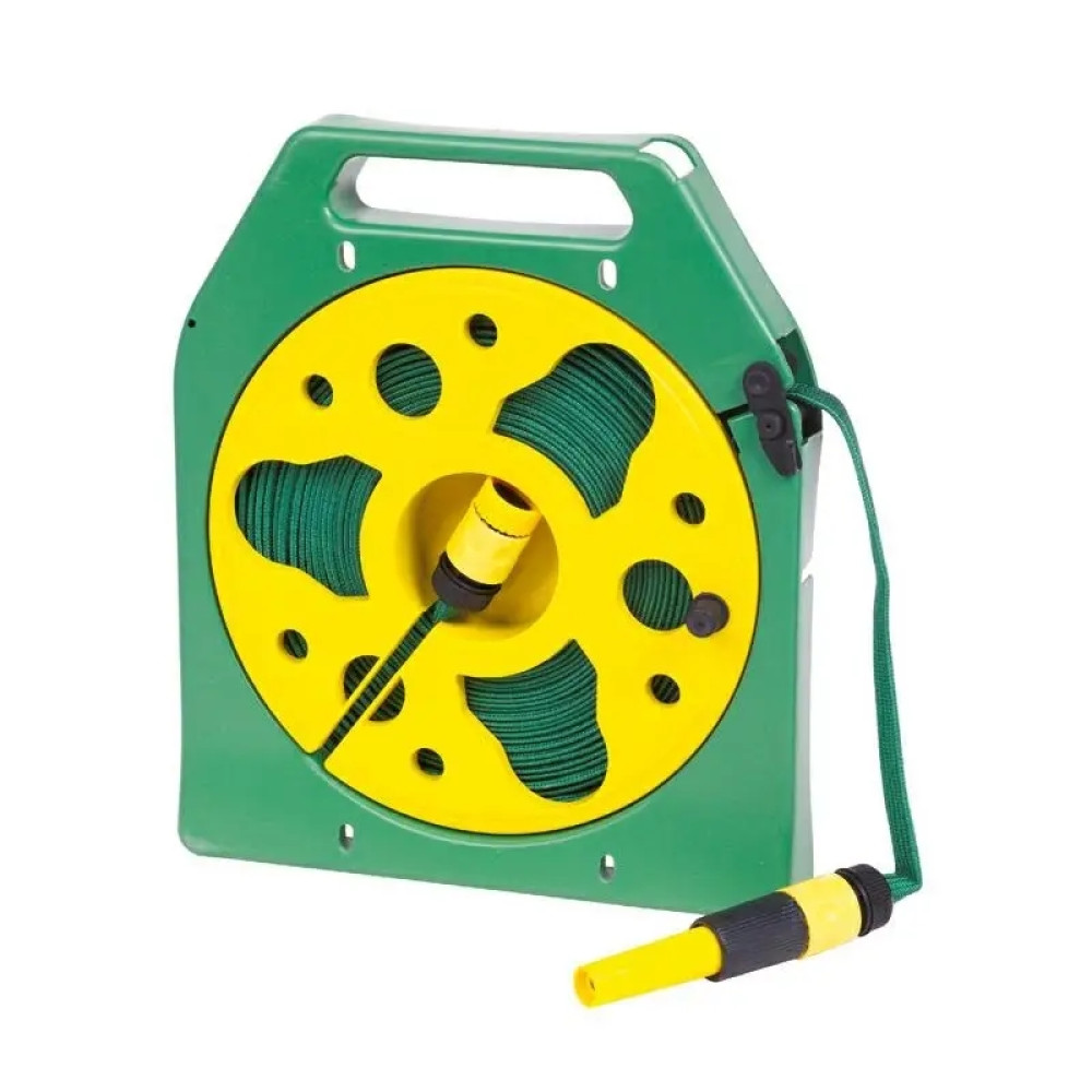 Шланг поливочный в катушке BSM 15 м • Плоский садовый шланг с распылителем и ручкой для переноски