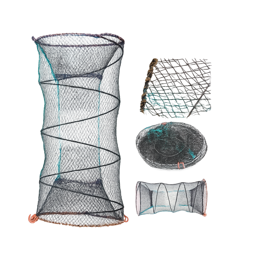 Верша изготовлена из прочного нейлонового волокна с мелкой сеткой, что позволяет удерживать как мелкую рыбу, так и более крупную добычу — раков, креветок, крабов. Каркас усилен металлическими кольцами, которые сохраняют форму даже при сильном натяжении. Ловушка быстро складывается, занимает минимум места в рюкзаке и легко транспортируется