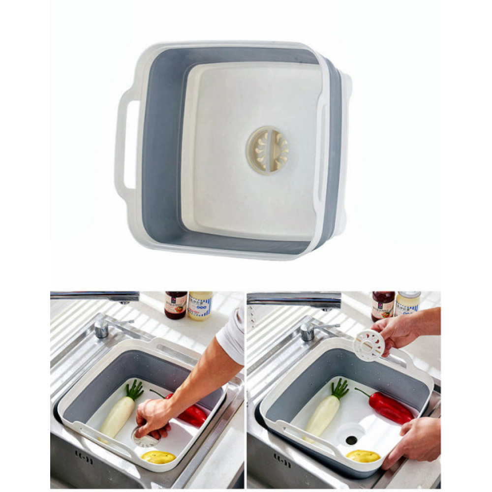 Уникальная квадратная корзина со сливом, удобными для переноски ручками, устойчивыми ножками, резиновым складным элементом и прочным пластиковым каркасом для сохранения формы решит сразу множество задач.