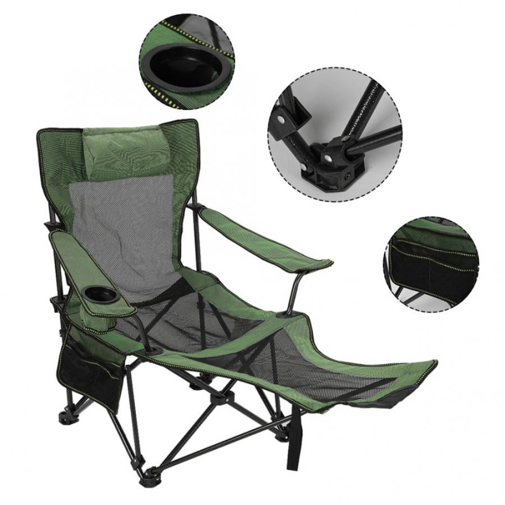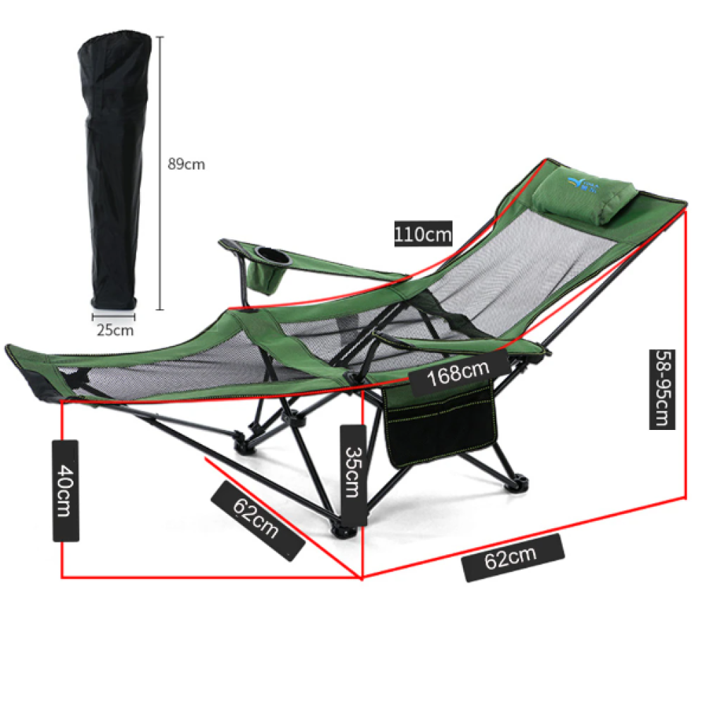 Складное рыбацкое кресло-шезлонг · Туристический раскладной лежак в чехле для дачи и отдыха, 170х62 см