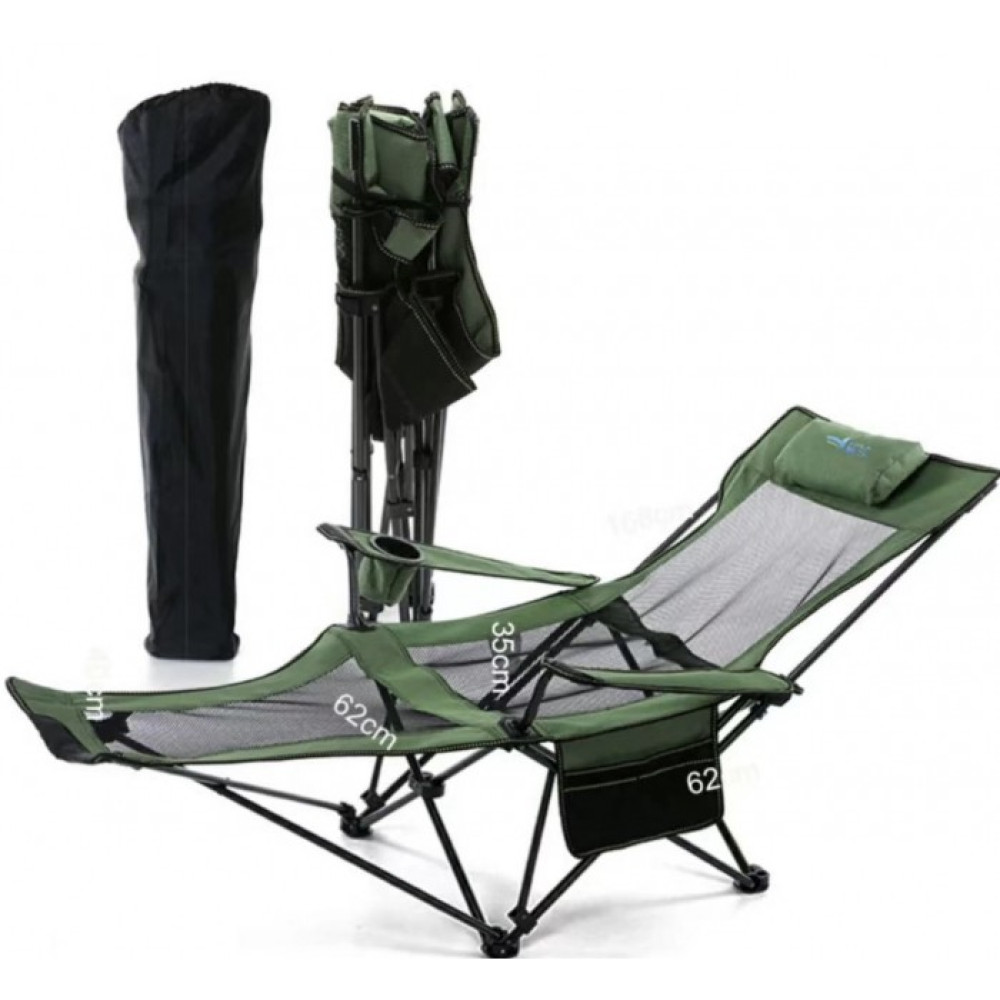 Складное рыбацкое кресло-шезлонг Туристический раскладной лежак в чехле для дачи и отдыха, 170х62 см