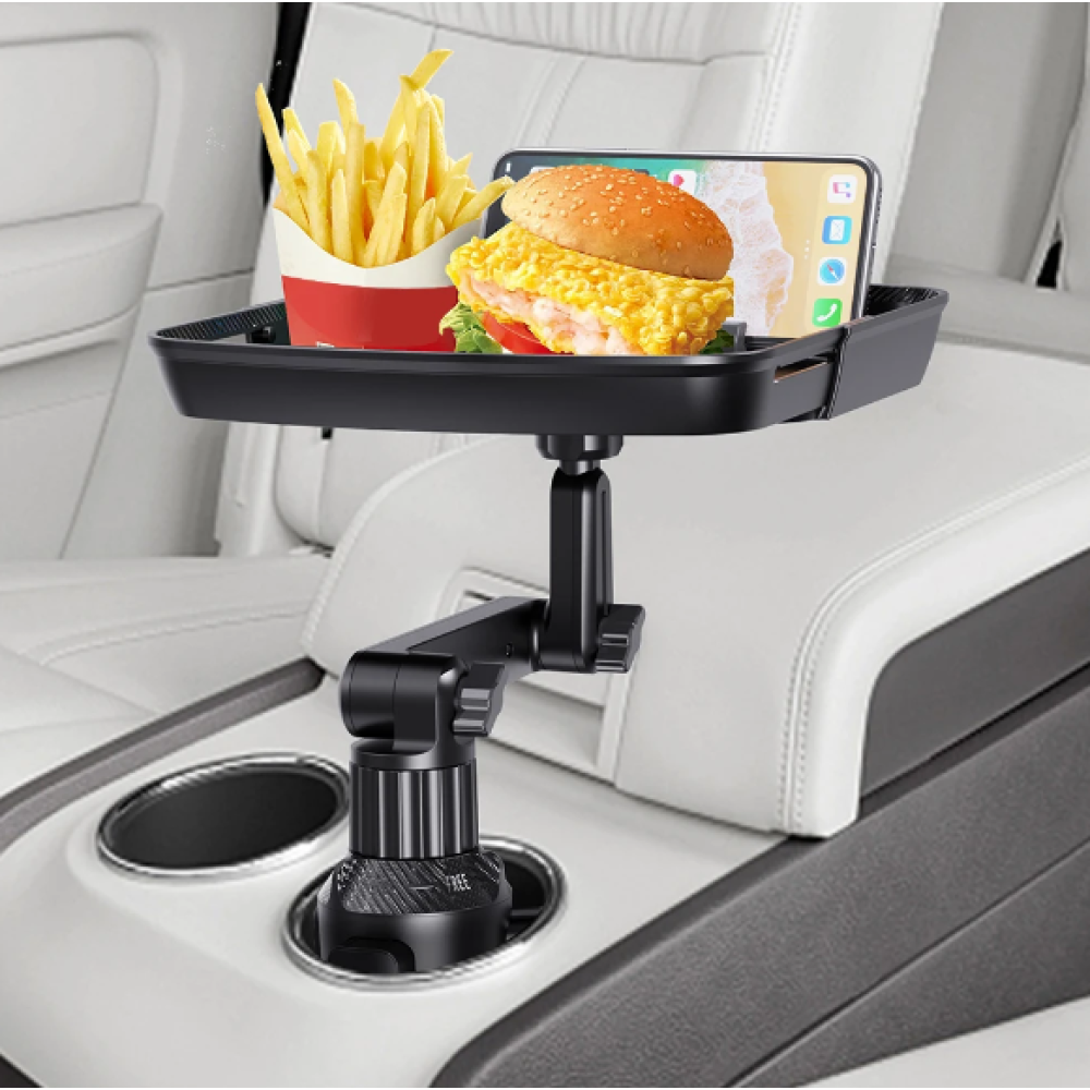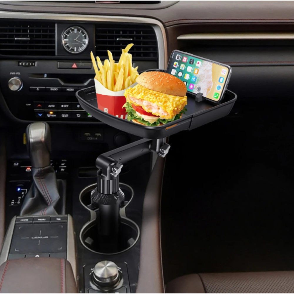 Складной автомобильный столик – органайзер в подстаканник с выдвижным подносом и держателем телефона