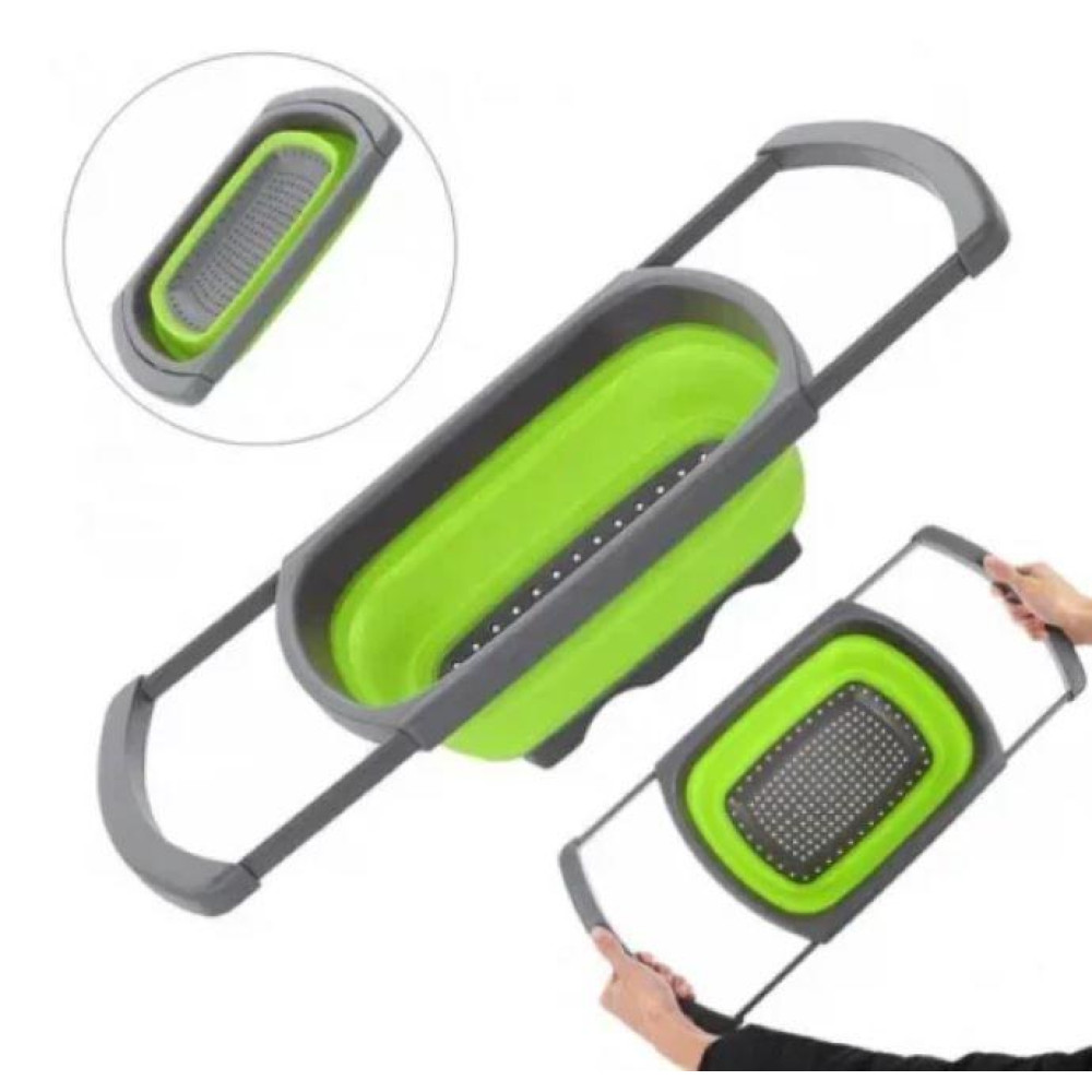 Складной силиконовый дуршлаг – трансформер с выдвижными ручками прямоугольный корзина для мытья овощей и фруктов