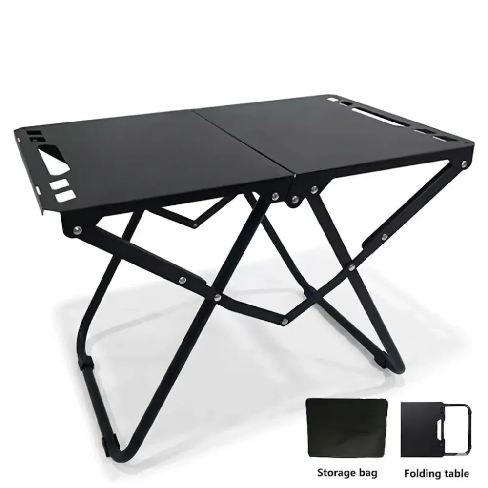 Складной туристический стол для кемпинга черный • Портативный раскладной стол из углеродистой стали для пикника, дачи, рыбалки и отдыха на природе