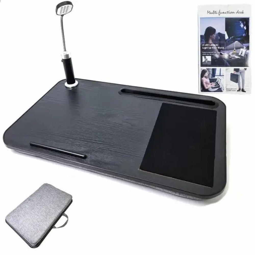 Представляем вашему вниманию столик-подставку для ноутбука Multifunction Desk — идеальное решение для комфортной работы и отдыха дома или в дороге! Этот многофункциональный столик сочетает в себе продуманный дизайн и максимальное удобство. Благодаря мягкой подушке снизу, он обеспечивает устойчивость и комфорт, даже если вы работаете на коленях. Встроенный светильник на магните с USB-подключением создаёт удобное освещение в темное время суток, а держатели для планшета и телефона помогут организовать ваше рабочее пространство. Столик подходит для ноутбуков до 16 дюймов и оснащён встроенным ковриком для мышки, что делает его незаменимым помощником для работы и развлечений.