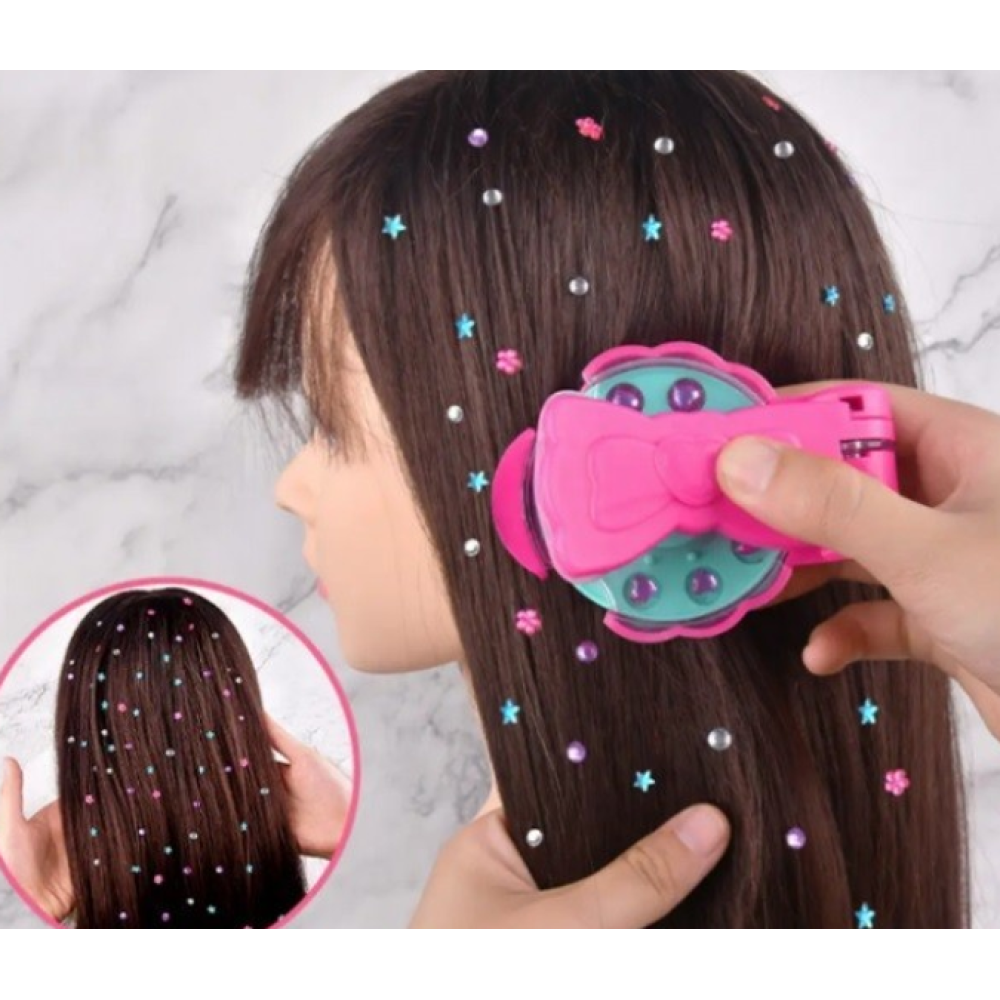 Этот волшебный набор для юного стилиста — идеальное решение для тех, кто мечтает выделяться. Украшай волосы, одежду, сумочки и другие аксессуары сверкающими стразами и создавай собственный стиль за секунды! Просто выбери нужный диск, нажми инструментом — и ты сияешь!