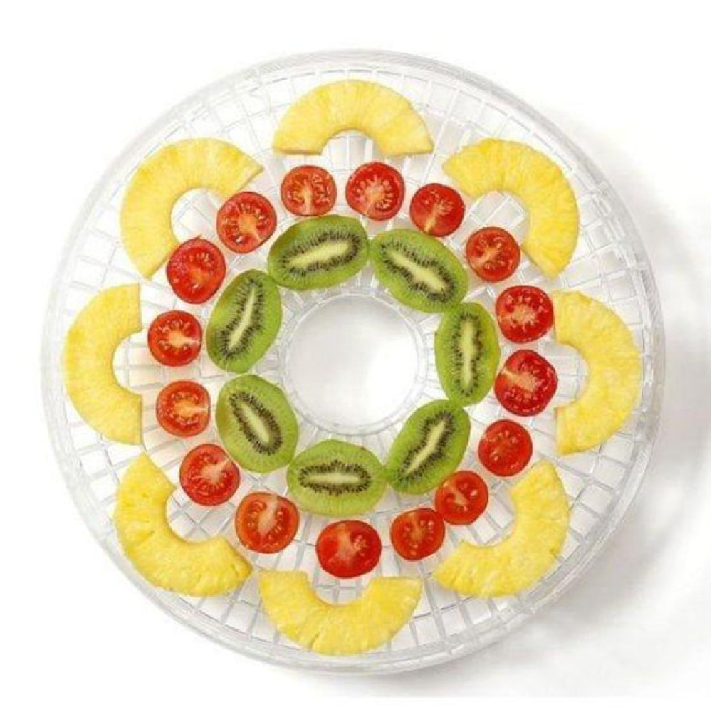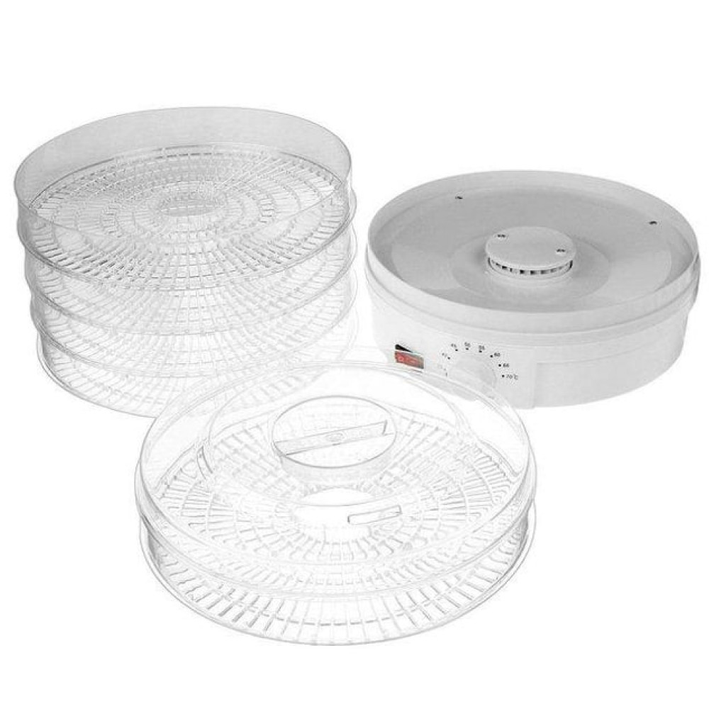 Прибор оснащён пятью поддонами, на которые можно равномерно распределить продукты для сушки, что даёт возможность обрабатывать большее количество продуктов одновременно