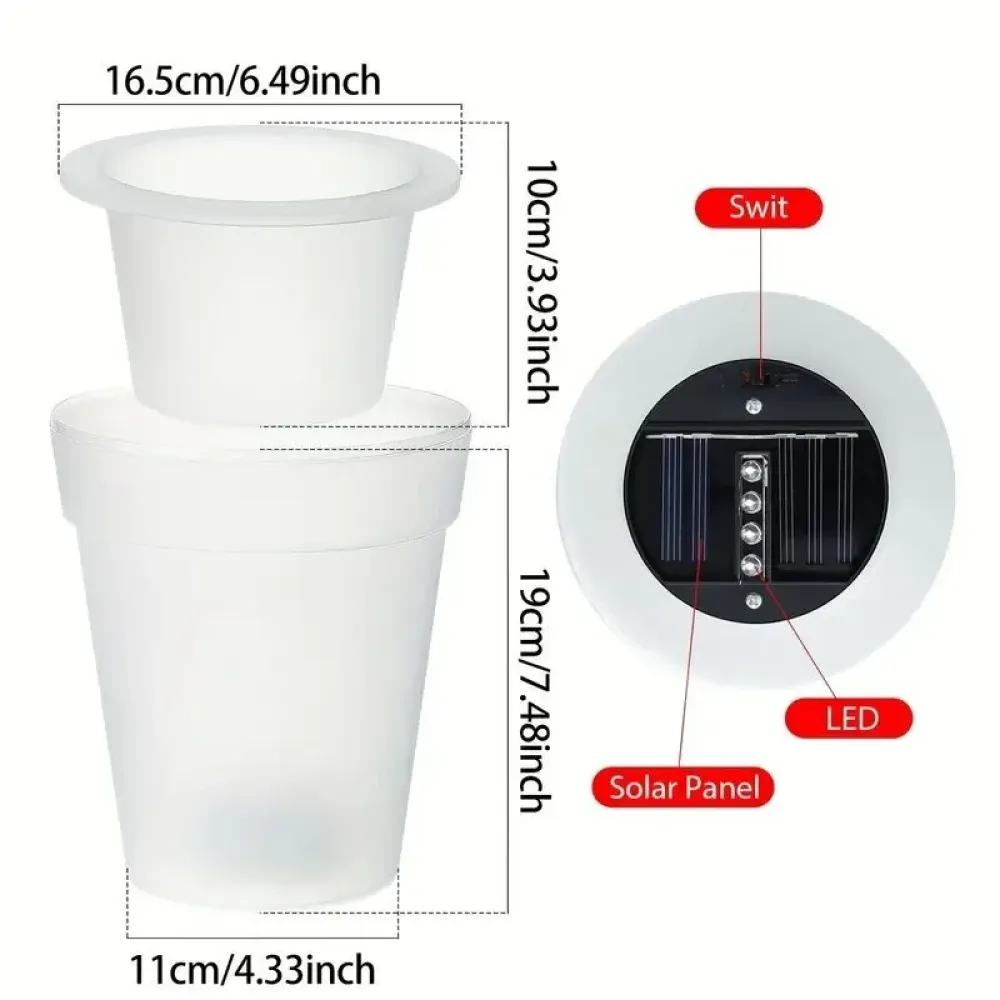 Светильник садовый Вазон для цветов на солнечной батарее ∙ LED кашпо с подсветкой для сада, террасы, двора и ландшафтного декора