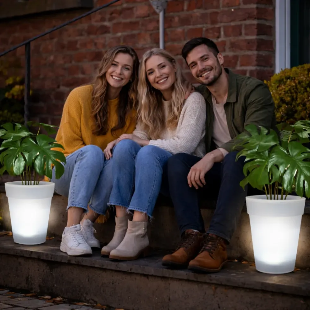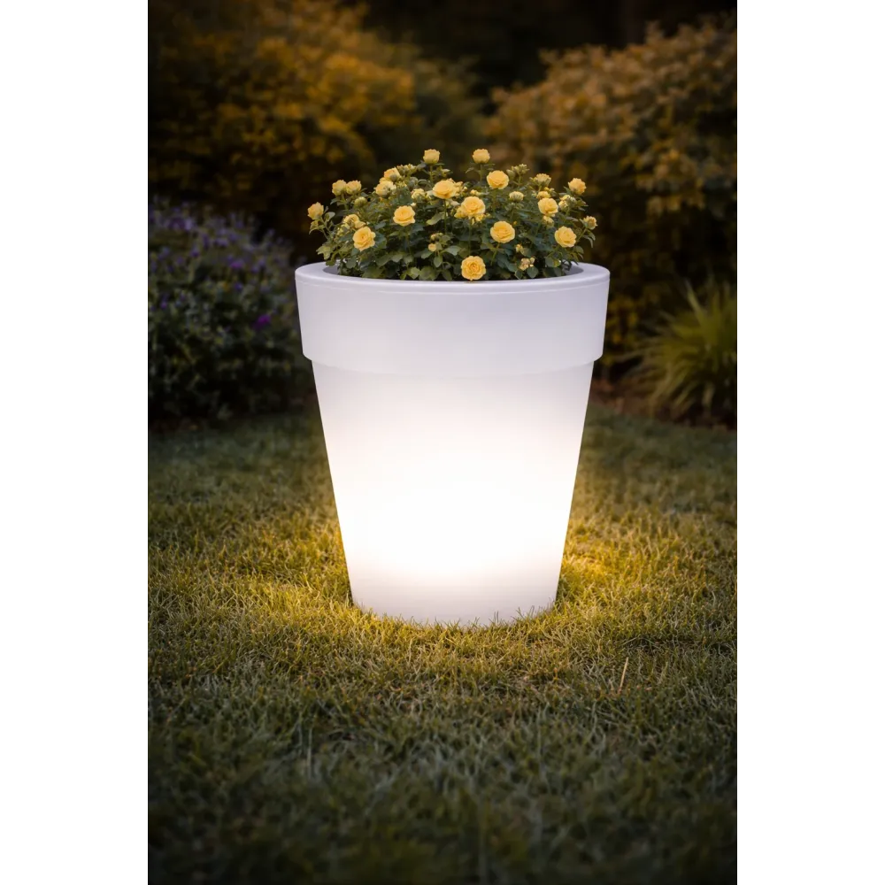 Светильник-вазон помогает не только красиво разместить цветы или декоративные растения, но и делает пространство более выразительным и завершенным. Мягкое свечение создает уютную атмосферу для отдыха на открытом воздухе, а влагозащищенный корпус позволяет использовать изделие на улице в разных погодных условиях. Это удачное решение для тех, кто ищет функциональный садовый декор с практической пользой и современным внешним видом.
