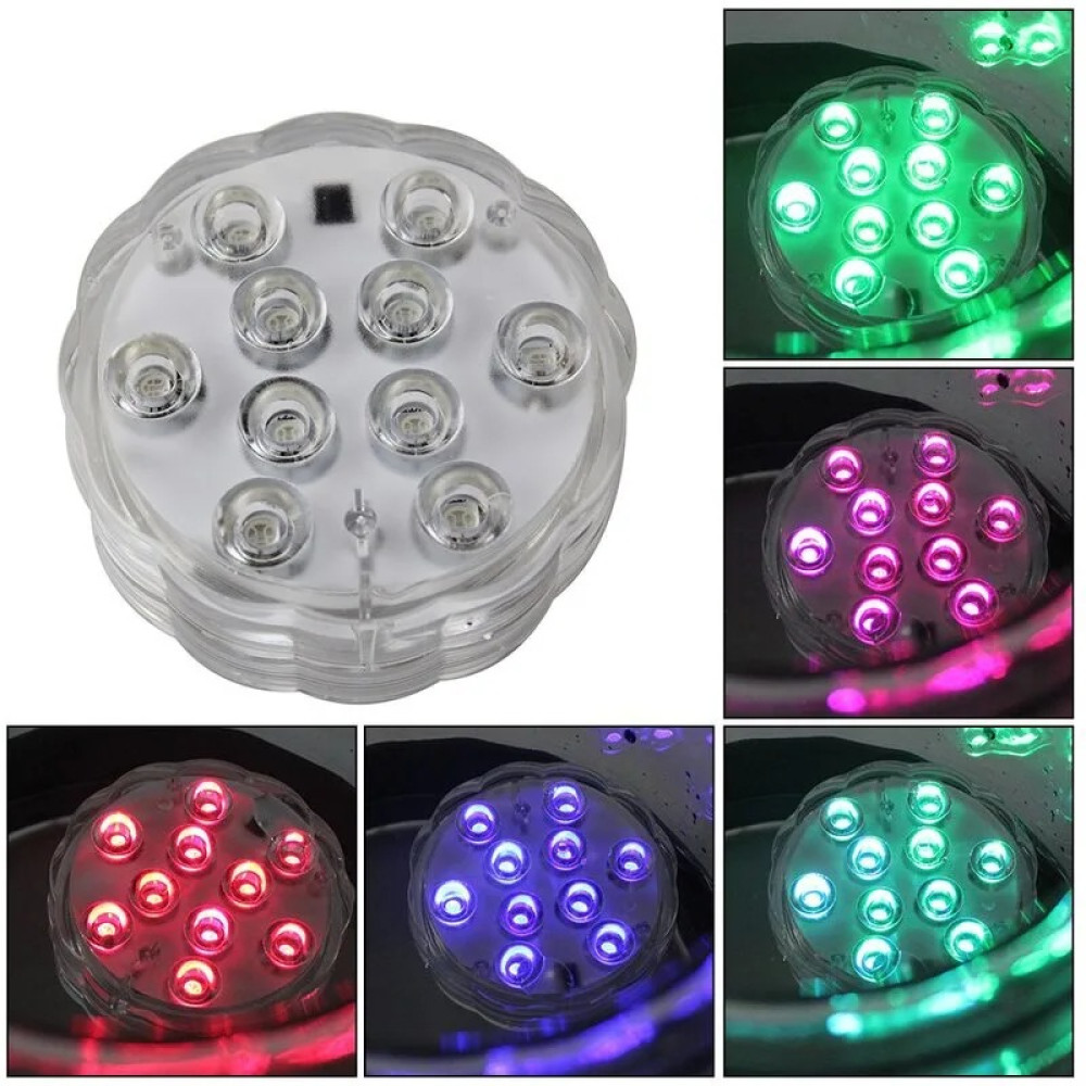 Светодиодная декоративная Водонепроницаемая LED лампа для бассейна · Подводный линзовый прожектор · RGB подсветка с пультом 12 цветов ― это мультицветная подсветка для создания цветного шоу на воде в бассейне, водоеме, фонтане, водопаде. Такой фонарь может быть использован для праздничной подсветки зданий, новогодних атрибутов. Это отличный способ украсить и оживить привычную обстановку яркими красками, создать праздничную, танцевально-развлекательную, игровую атмосферу возле бассейна или украсить свой фонтан красочной палитрой.
