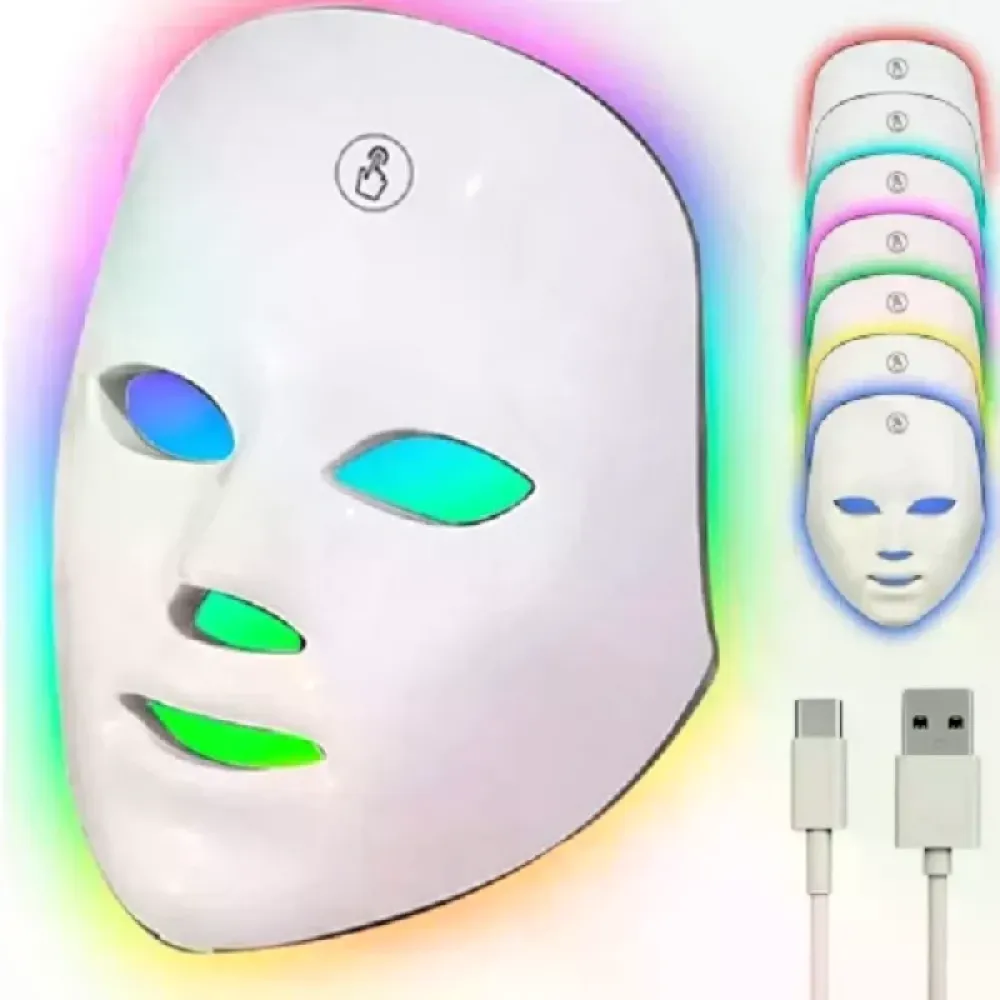 Светодиодная LED-маска для лица 7 в 1 с цветной светотерапией • Маска для домашнего ухода за кожей лица с 7 LED-режимами и USB-зарядкой