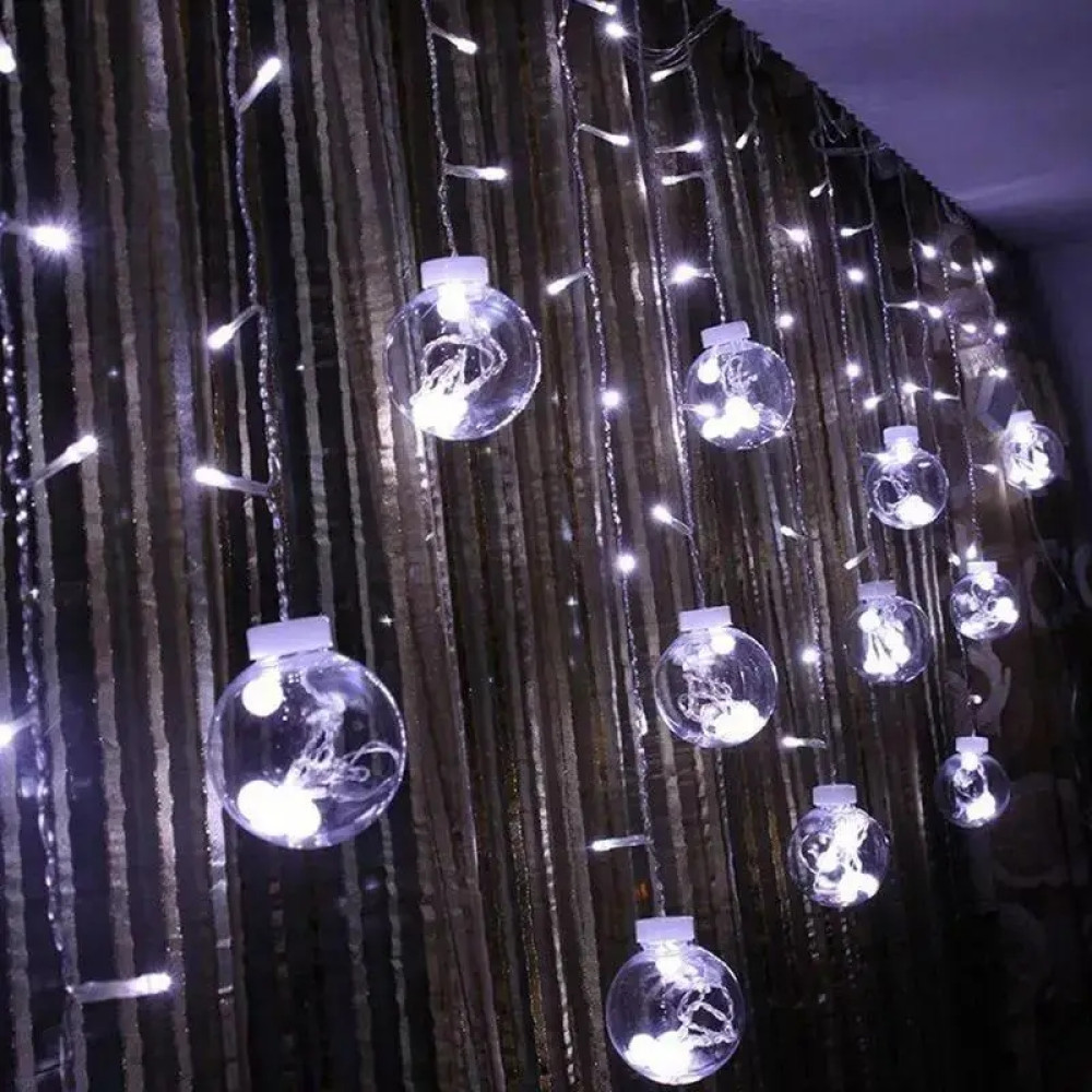 Светодиодная гирлянда RD-070 Штора Шарик в шарике ∙ Гирлянда-штора RD-070 с белым проводом и белым свечением ламп
