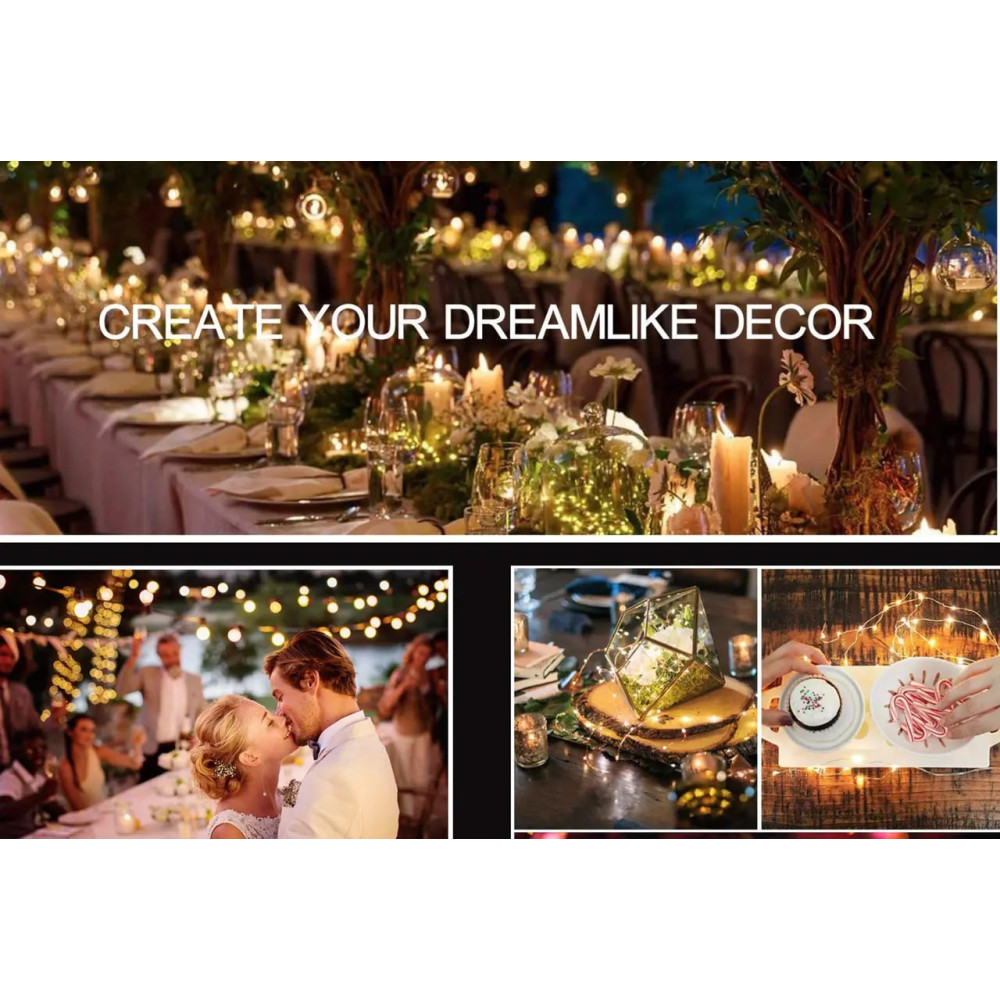 Создайте атмосферу уюта, тепла и волшебства с гирляндой из 200 LED лампочек на медной проволоке длиной 2 метра. Она идеально подходит для праздничного оформления, романтического декора или создания мягкого освещения в любом пространстве — дома, на террасе, в саду или во время вечеринки.