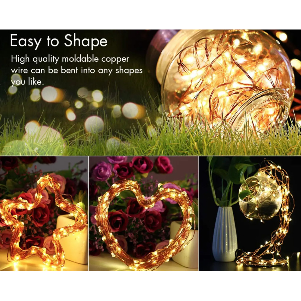Гирлянда выполнена из качественных материалов, а гибкая медная проволока позволяет легко придавать ей любую форму — обернуть вазу, зеркало, цветочную композицию или украсить праздничный стол. Мягкий тёплый свет создаёт уютную атмосферу и добавляет комфорта.