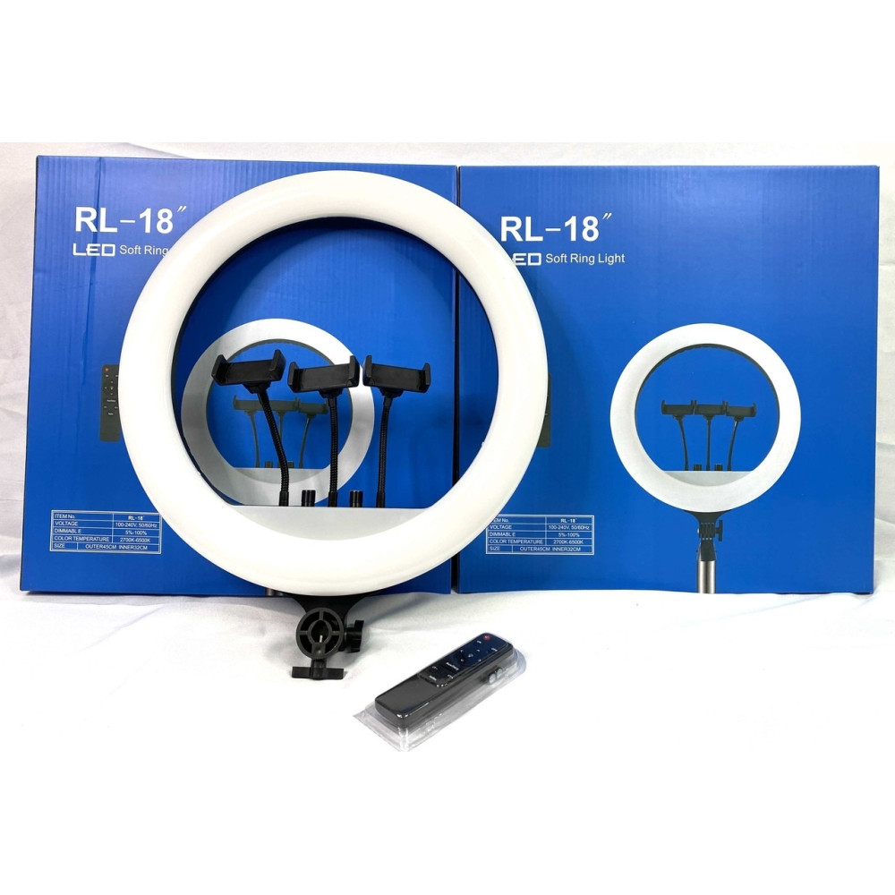 Кольцевая светодиодная лампа LED Soft Ring Light RL-18 имеет 512 SMD светодиодов, которые обеспечивают равномерный свет, без мерцания. Лампа подключается к сети 220V и не нагревается даже после долгого периода работы. Плавная регулировка температуры и яркости света осуществляется двумя диммерами, находящимися на корпусе кольцевого осветителя.