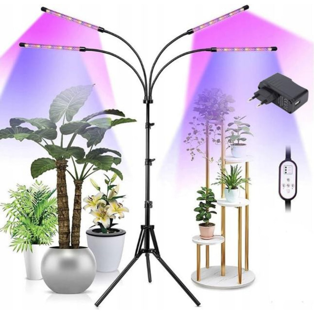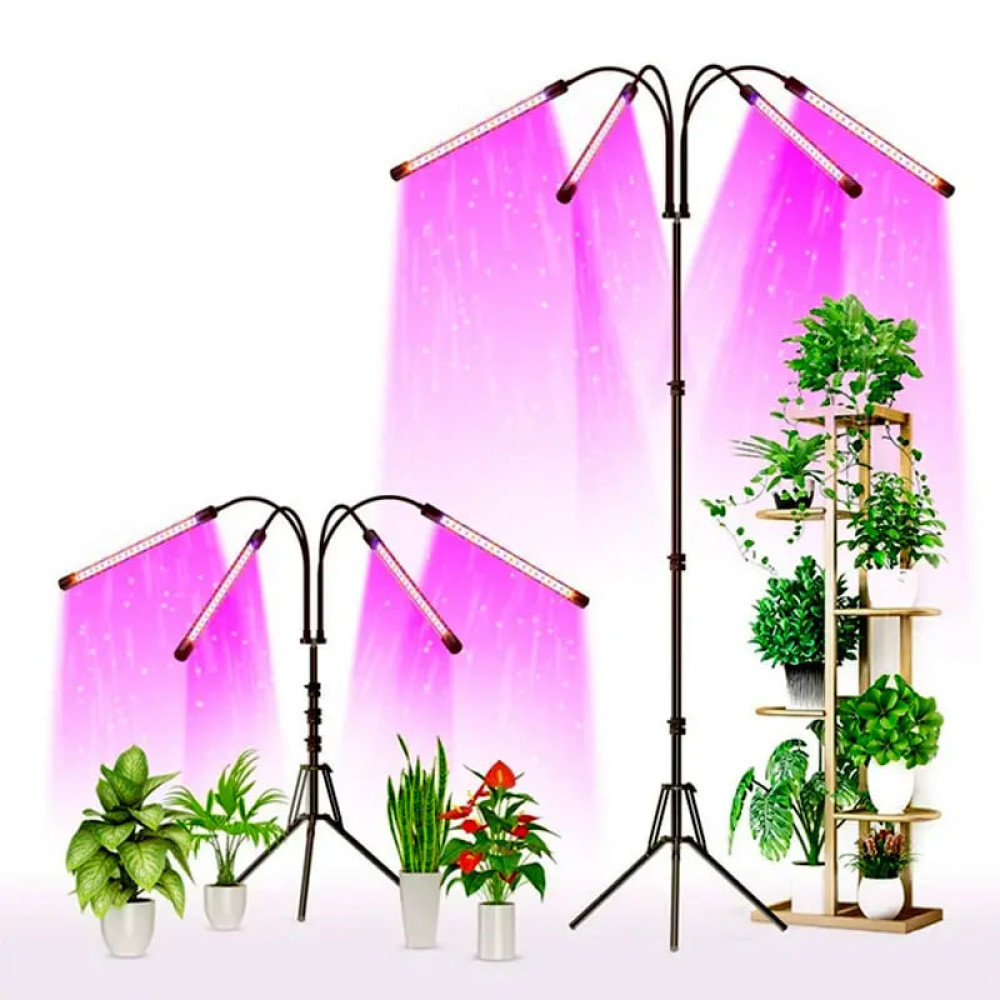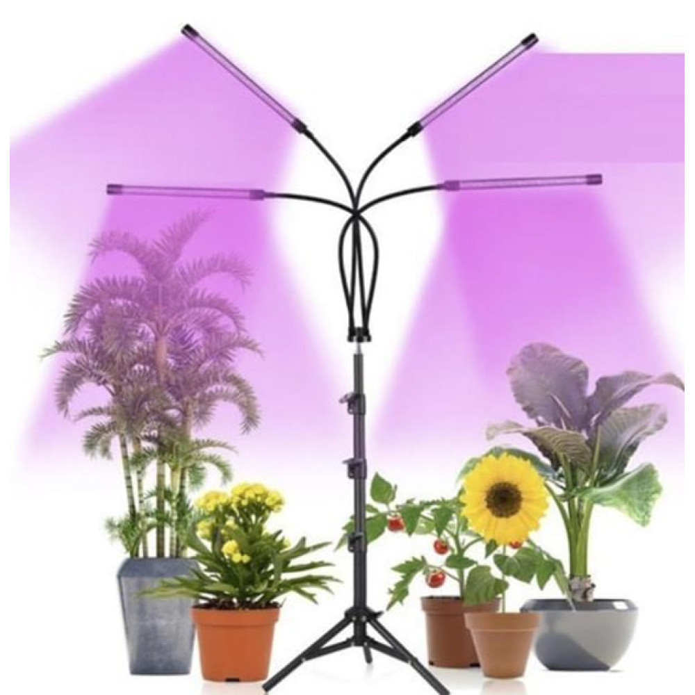 Светодиодная лампа для фотосинтеза растений с 4 линиями освещения на штативе • LED-лампа для роста рассады и комнатных растений с 4 линиями