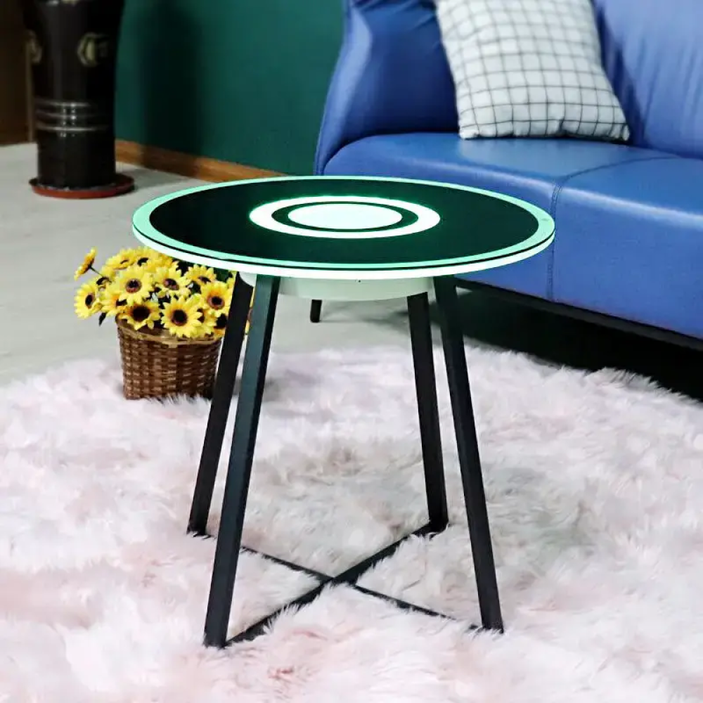 Элегантный черный стеклянный журнальный столик объединяет стильный дизайн и практичные технологии, становясь незаменимым элементом современного интерьера. Встроенная подсветка создает уютное освещение, а Bluetooth-колонка на 10 Вт дарит мощное и чистое звучание для наслаждения любимой музыкой. Функция зарядки 5V2A позволяет быстро подзаряжать смартфоны и гаджеты, а емкий аккумулятор на 4000 мАч обеспечивает автономную работу. Прочное стекло, акрил и металлический каркас гарантируют долговечность. Сенсорное управление делает активацию функций удобной и приятной, а минималистичный стиль идеально подходит для компактных помещений.