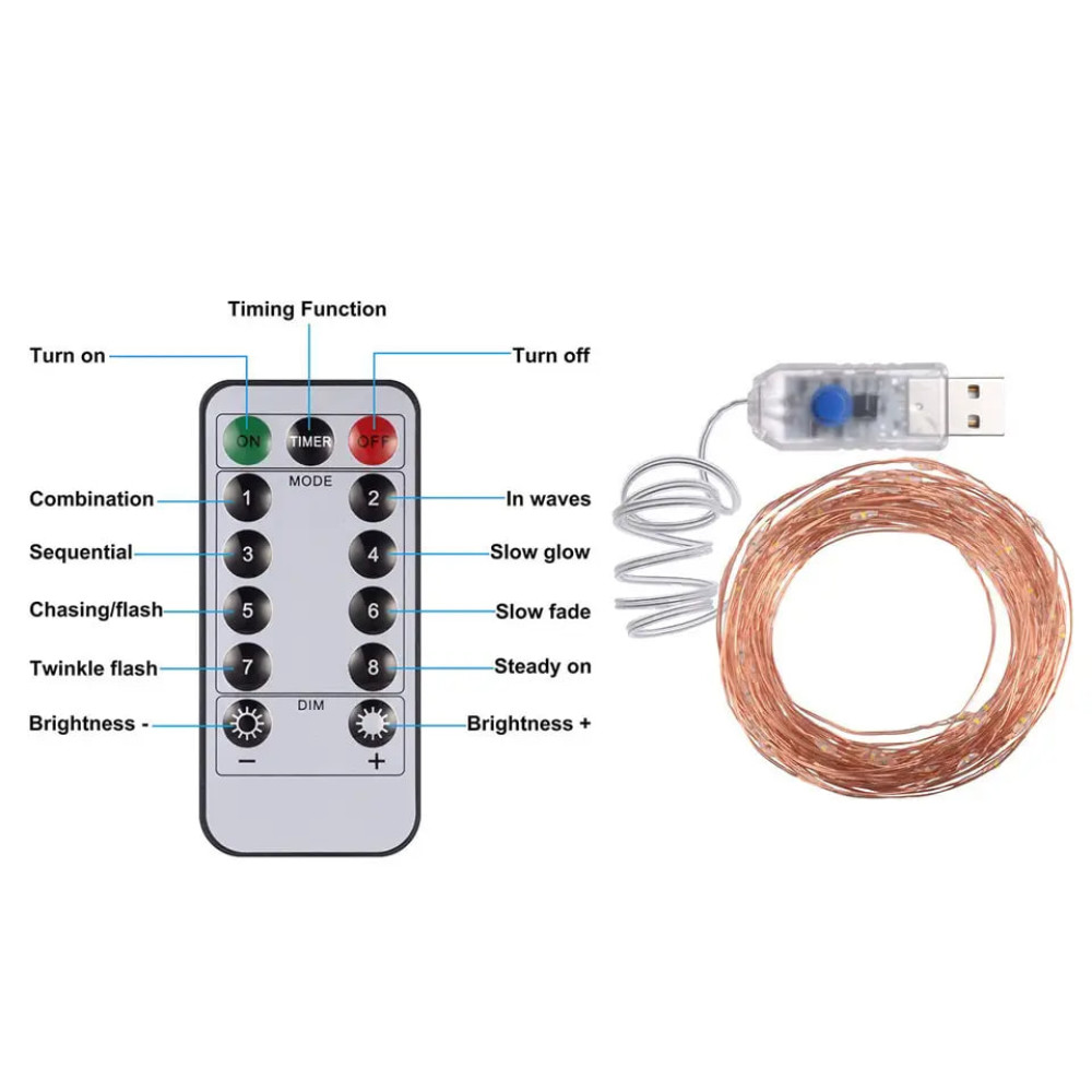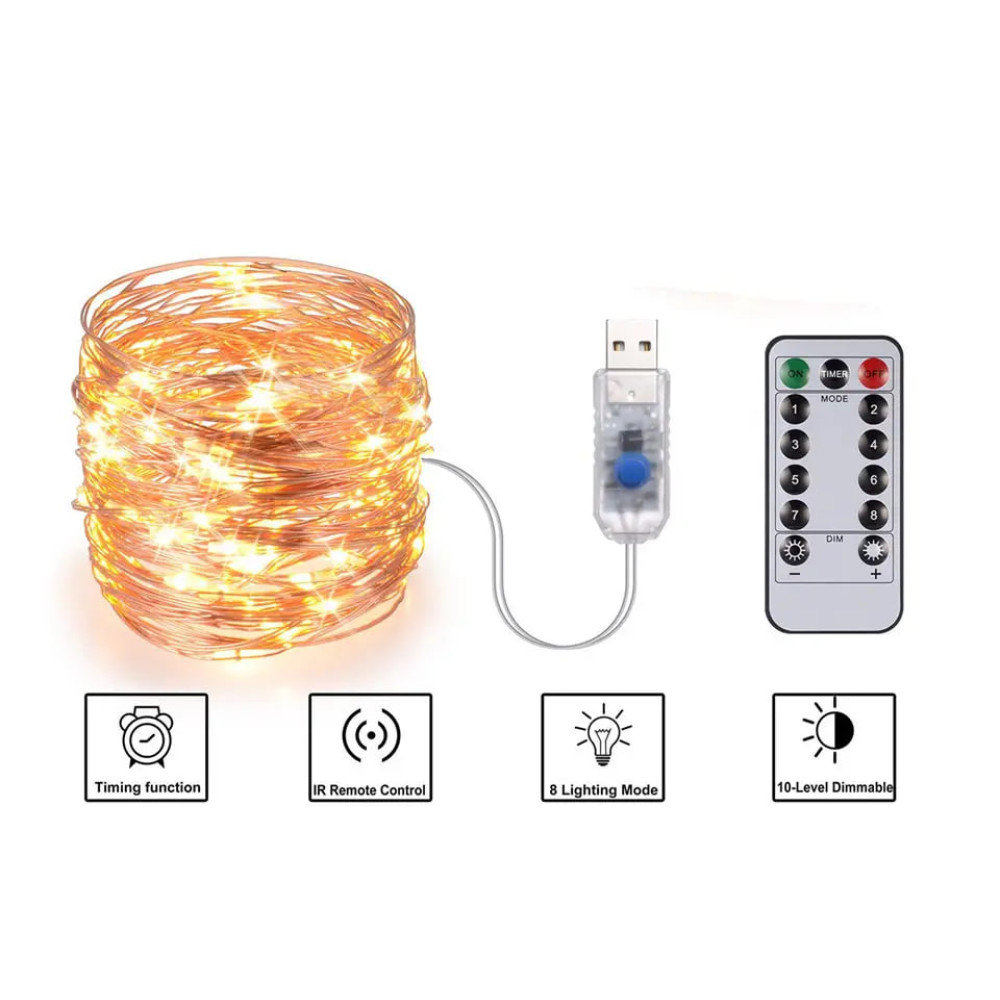 Светодиодная гирлянда Роса USB 100м с пультом дистанционного управления ∙ Гирлянда медная проволока 1000LED 100м USB 78-20