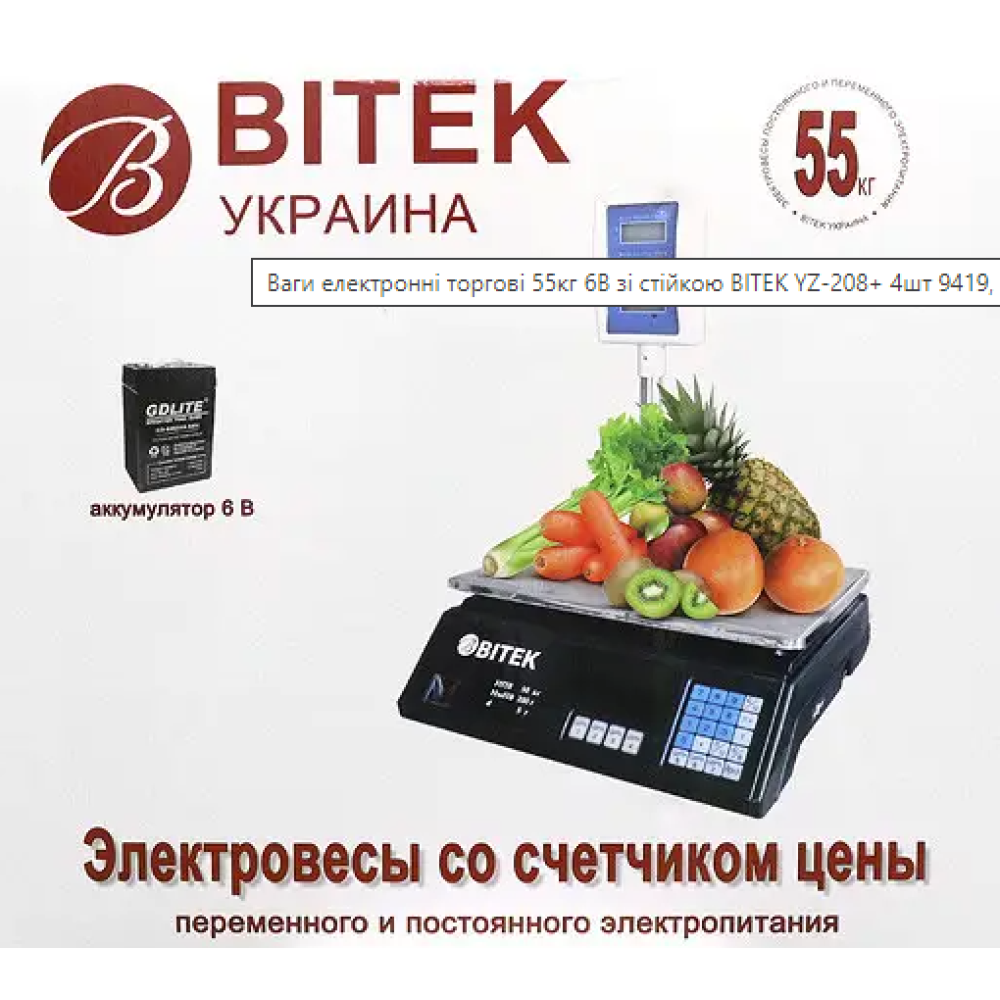 Торговые электронные весы со стойкой BITEK YZ-208 Товарные настольные весы с счетчиком цены и аккумулятором, до 55кг
