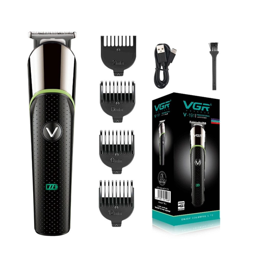 Триммер для стрижки волос VGR V-191 беспроводной · Машинка для стрижки волос, бороды, усов аккумуляторная 4 насадки - стильный мощный недорогой триммер для стрижки волос. Данная модель VGR V-191 идеальна не только для усов, бороды и окантовки и узоров на голове.