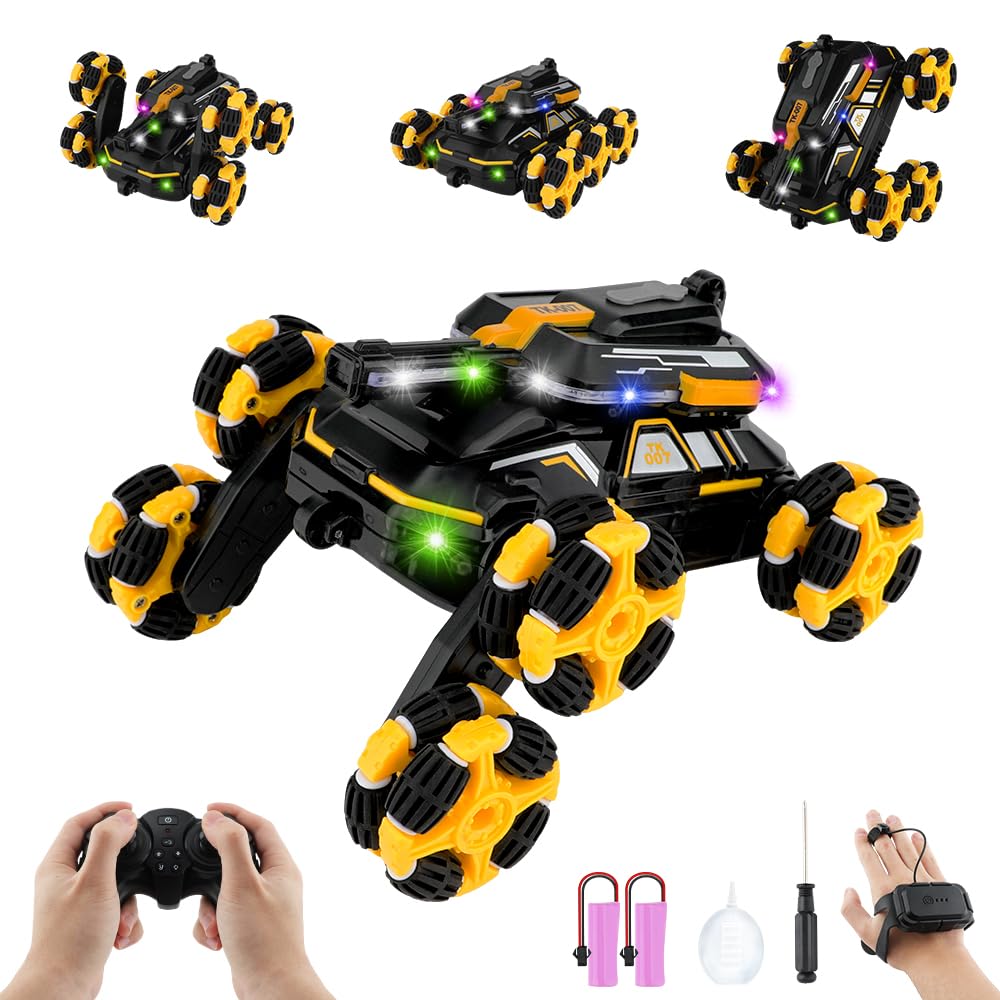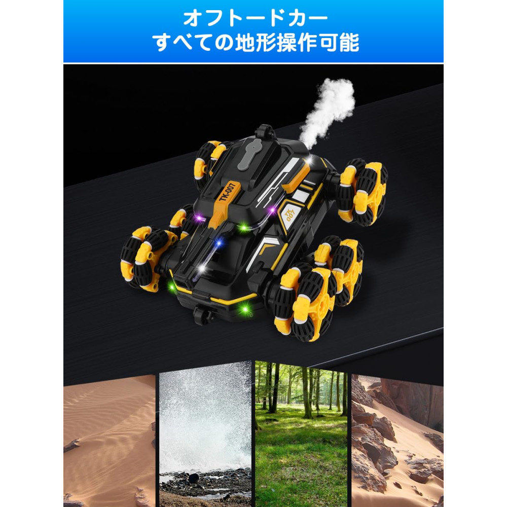 Этот радиоуправляемый вездеход способен преодолевать любые препятствия и полностью управляется: движение вперёд, назад, вправо и влево. С первых секунд внимание привлекает впечатляющий дизайн и качественное исполнение: корпус выполнен из прочного первичного пластика, а шесть мощных резиновых колес с роликовыми вставками обеспечивают отличное сцепление с поверхностью и возможность проходить по любым покрытиям. Колеса светятся, что создаёт эффектное визуальное сопровождение во время игры