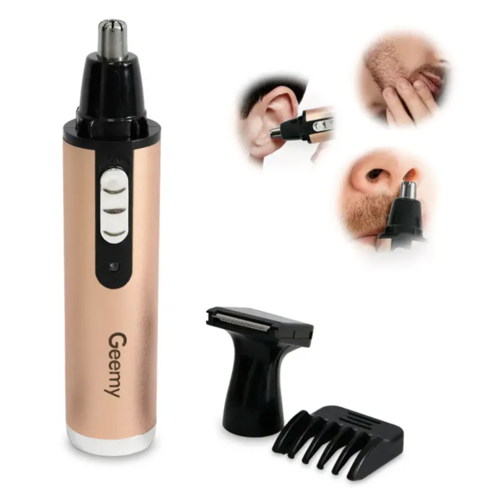 Триммер GEMEI GM-3112 2в1 — универсальное устройство для ухода за внешностью мужчин любого возраста. Благодаря двум сменным насадкам прибор эффективно удаляет волосы в носу и ушах, а также подходит для точной окантовки, подравнивания бороды, усов и бровей
