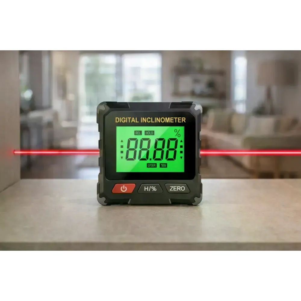 Цифровой инклинометр-угломер с лазером и магнитным основанием — это удобный электронный прибор для точного измерения углов, наклона и выравнивания поверхностей при ремонте, монтаже и строительных работах. Он помогает быстро выставлять нужный угол без лишних расчетов, что особенно важно при установке профилей, направляющих, труб, станков, мебели и различных конструкций. Благодаря цифровому формату измерения пользователь получает наглядный результат, экономит время и снижает вероятность ошибки при разметке и сборке.