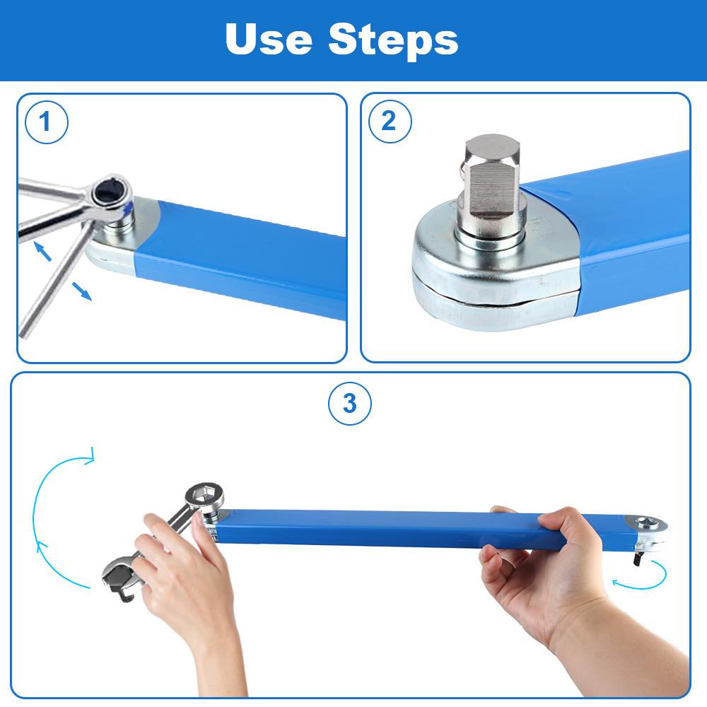 Удлинённый ключ с храповым механизмом — идеальный инструмент для работы в ограниченных и труднодоступных пространствах. Длина 15 дюймов обеспечивает отличный рычаг, позволяя легко справляться даже с прикипевшими креплениями. В комплект входят адаптеры на 1/4", 3/8" и 1/2", что делает его совместимым с большинством стандартных головок и удлинителей.