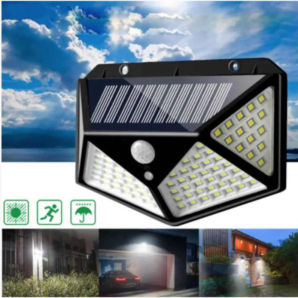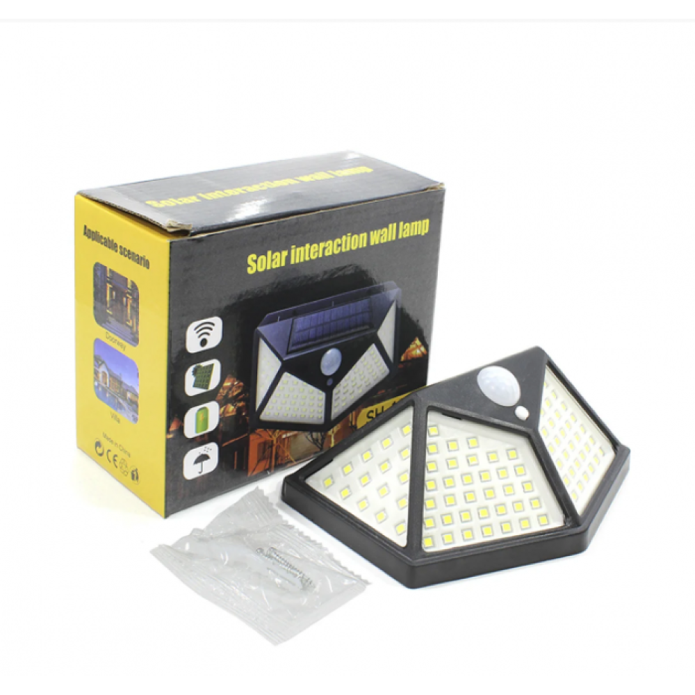 Уличный настенный светильник Lesko SH-100 на солнечной батарее с датчиком движения 100 LED диодов Этот 100-диодный светильник преобразует солнечную энергию, полученную в течение светового дня, в электрическую и накапливает ее во встроенном аккумуляторе емкостью 600 мАч. Ночью светильник включается автоматически. Время его свечения зависит от продолжительности светового дня, места установки, погодных условий и выбранного режима работы. 100 светодиодов обеспечивают высокий уровень яркости при подсветке большого пространства.