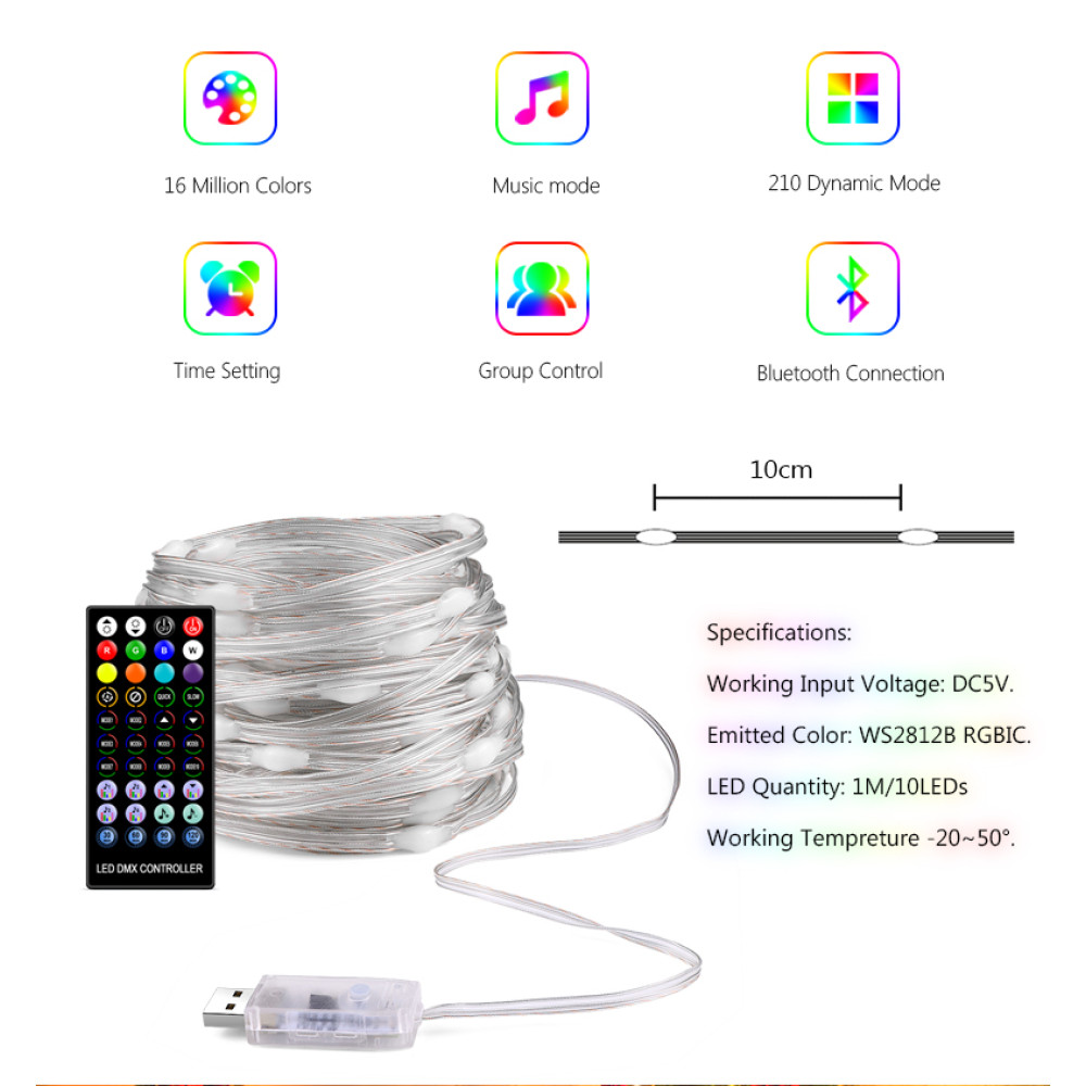 Управление через приложение! Все огни можно контролировать дистанционно через приложение (QR-код напечатан на USB-разъеме). Каждая светодиодная лампа является полностью программируемой интеллектуальной лампочкой с помощью Bluetooth-приложения, что позволяет создавать уникальные световые эффекты