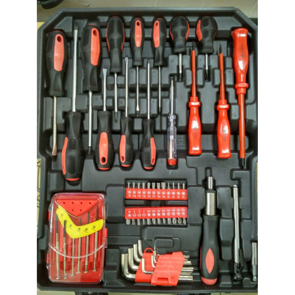 Предлагаем вашему вниманию отличный набор инструментов фирмы Kraft Royal, в котором есть абсолютно все, чтобы починить ваш автомобиль или что-либо другое. Этот набор упакован в чемодан на колесах. Инструменты изготовлены из сплава металла Хром-Ванадий, следовательно, они прочные и долговечные.