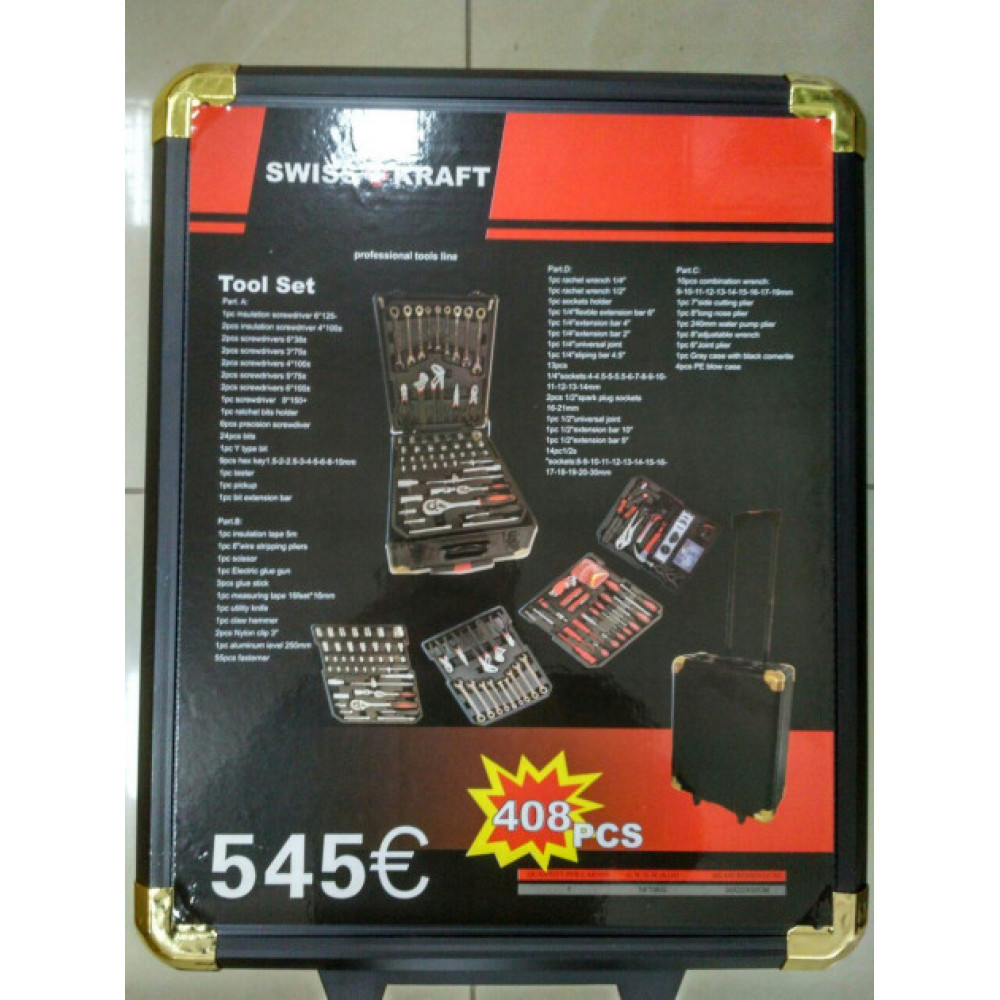 Универсальный автомобильный набор инструментов Kraft Royal 408 предметов в чемодане | Кейс с инструментами