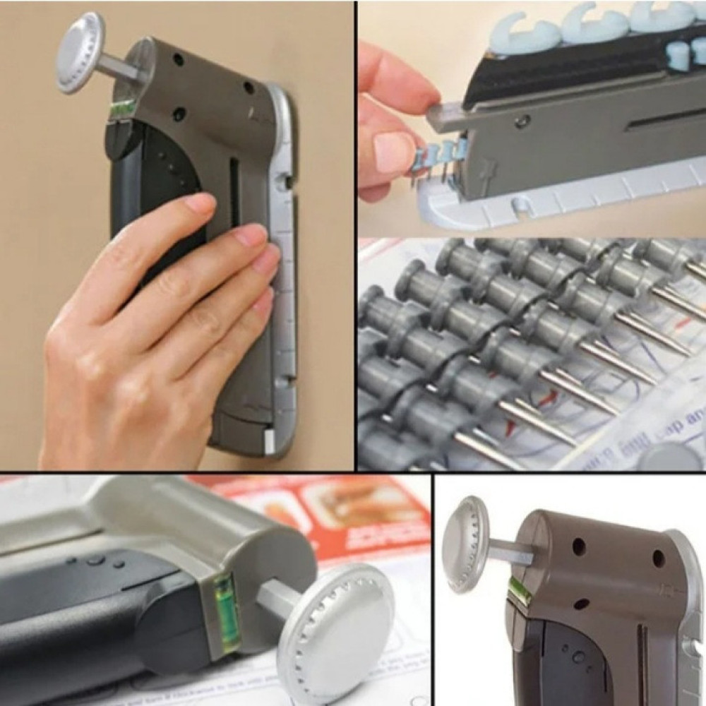 Insta Hang снабжен скрытым отделением для хранения запасных штепселей, колпачков и крючков; встроенным барботажным уровнемером для точного расположения и «пистолетом» для извлечения штепселей. Это превосходное и простое приспособление включает в себя все, что вам может понадобиться для немедленного и точного крепления любого предмета.
