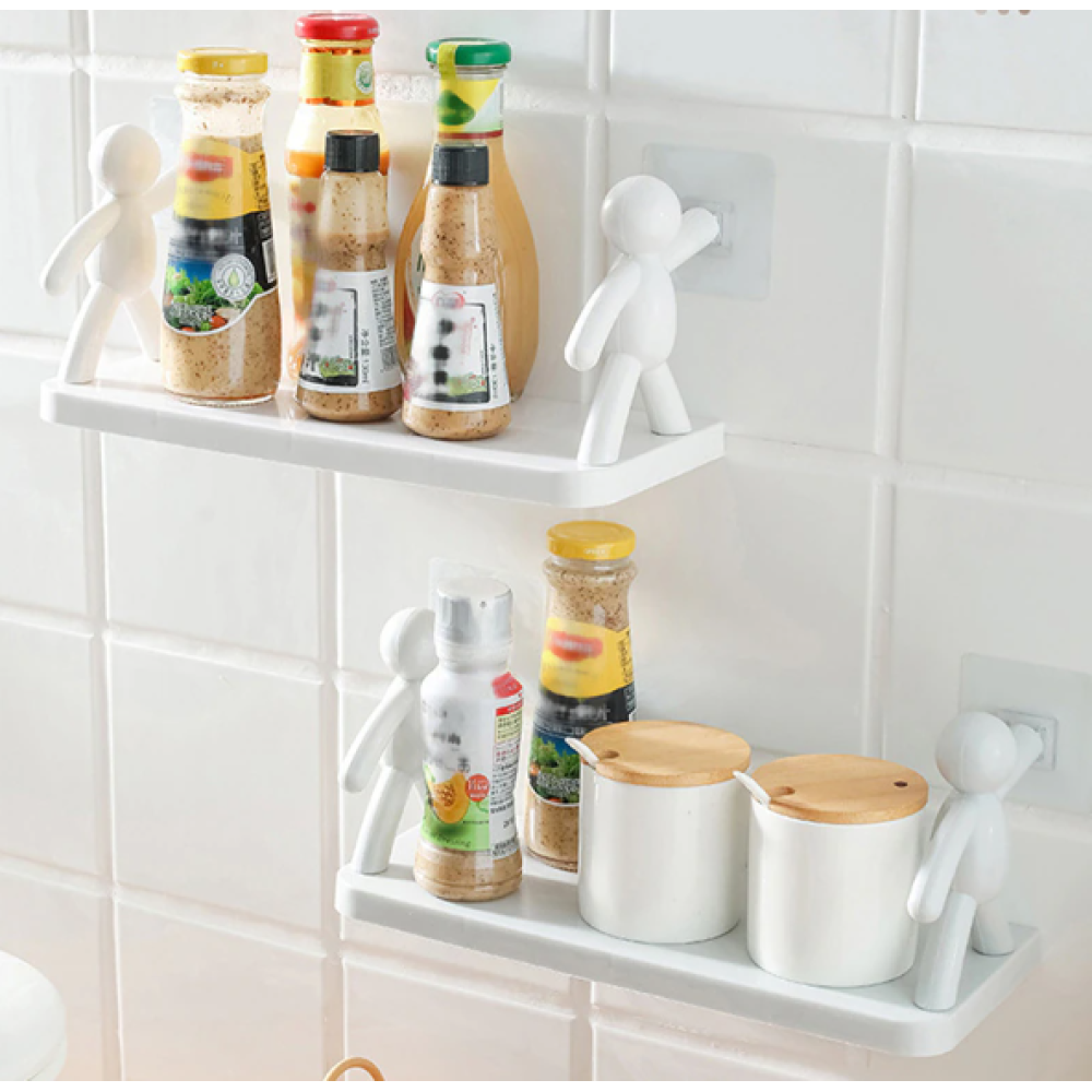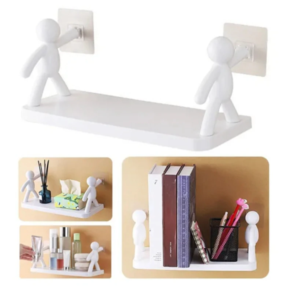 Универсальная подвесная полочка Человечки для ванной комнаты / кухни Бытовая полка на клейких креплениях, 33х14 см