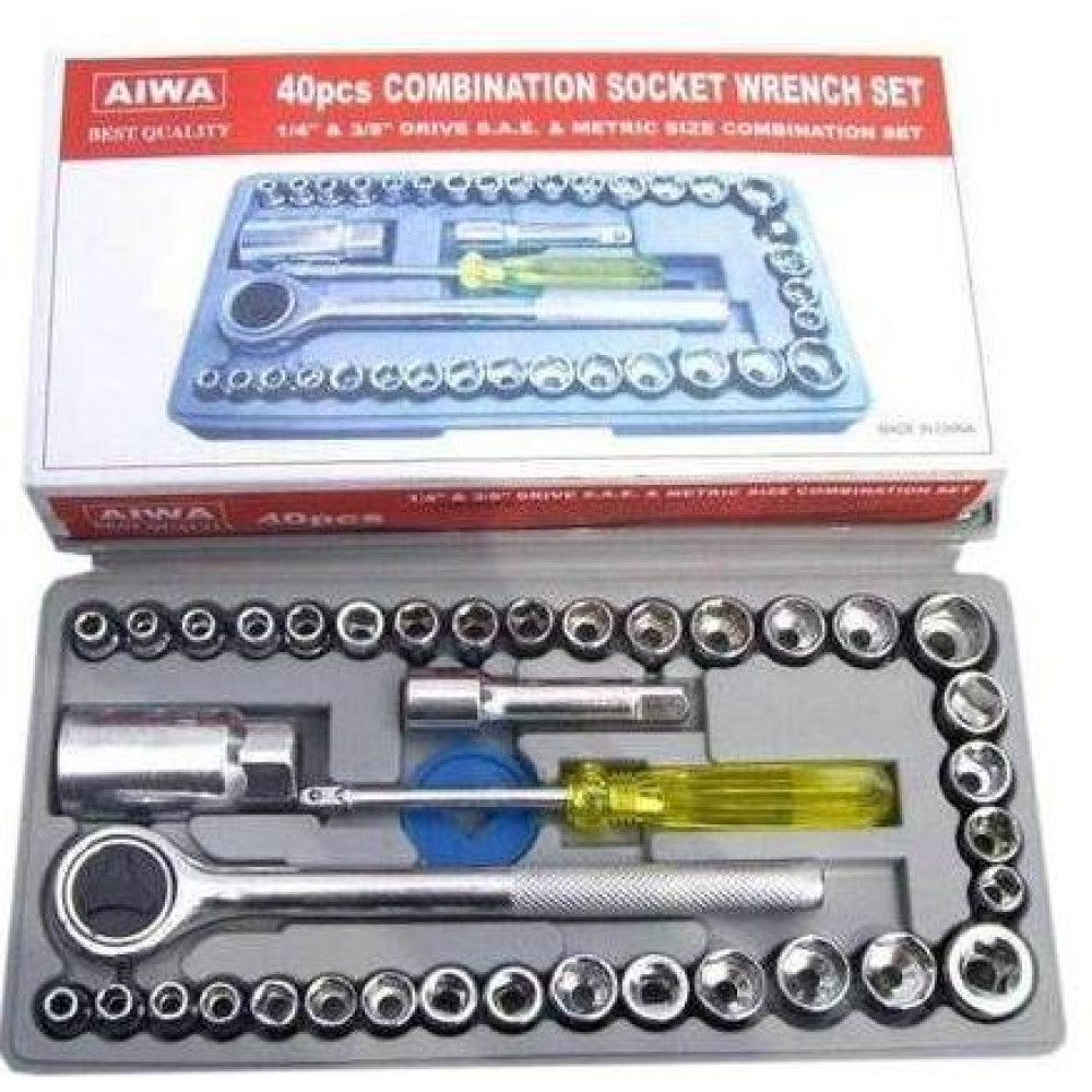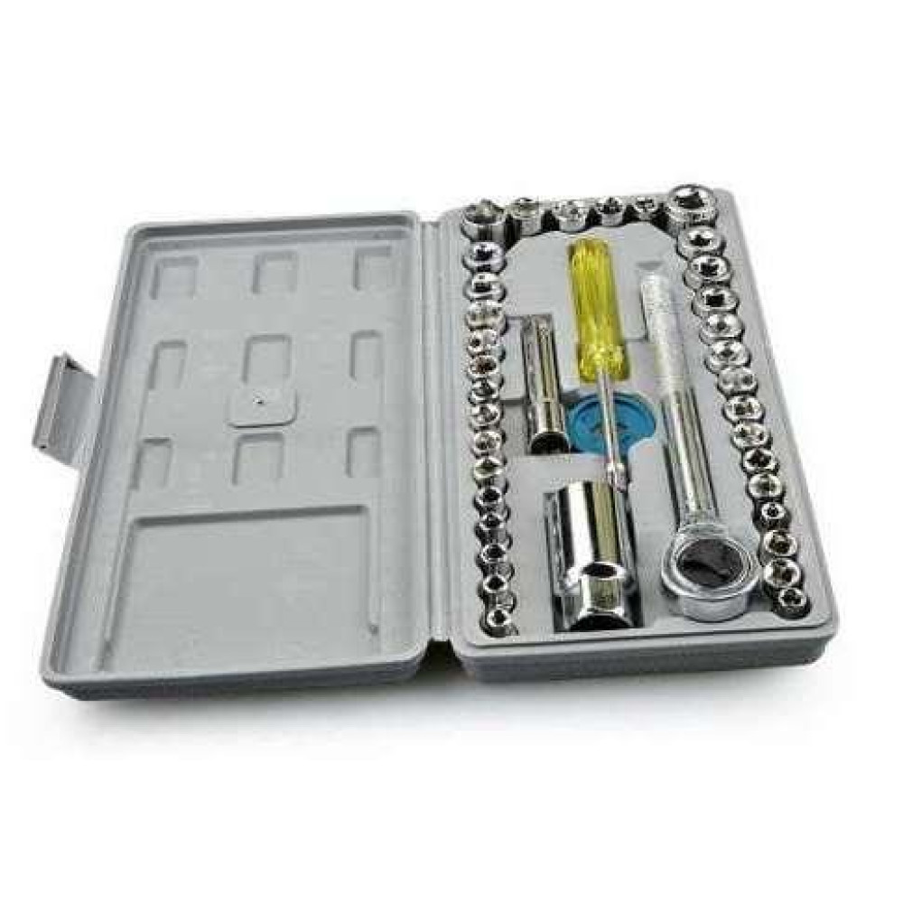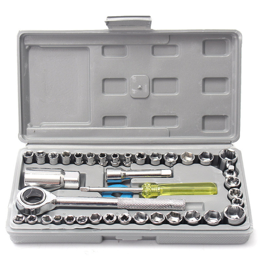 Набір інструментів 40 в 1 в чемоданчике цей універсальний набір інструментів розроблений спеціально для проведення різноманітних ремонтних робіт автомобіля. В нього входять головки, трещотки і насадки, що дозволяють проводити операції навіть у важкодоступних місцях.